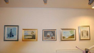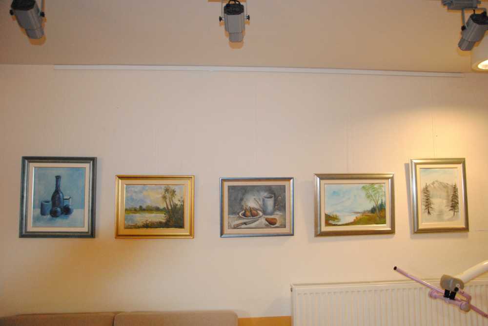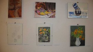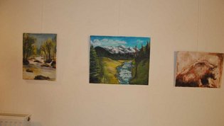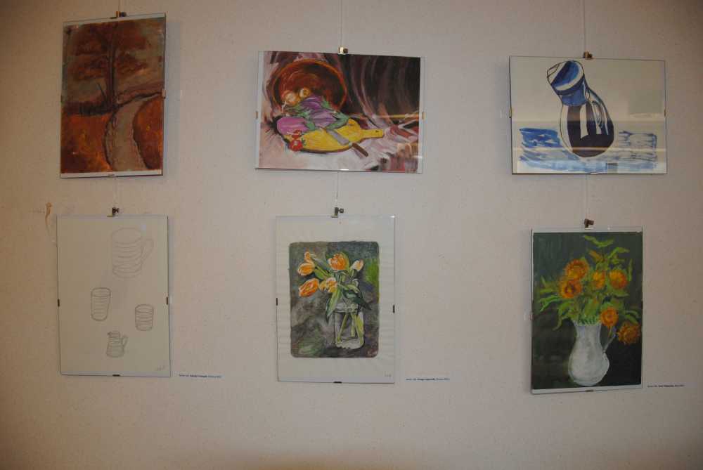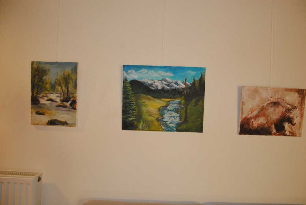 V prostorih doma so razstavljena prva dela slikarjev društva – Drage Lapornik, Alenke Tratnjek in Emila Palamete, ki so začetne slikarske poteze naredili na poletnih likovnih delavnicah ter mentorja in že uveljavljenega slikarja Damjana Roglja. Na fotografski razstavi pa se z umetniškimi fotografijami predstavljajo: Mirjam Kanalec, Mojca Burger, Zala Kovačič Hren in Darko Bajželj.