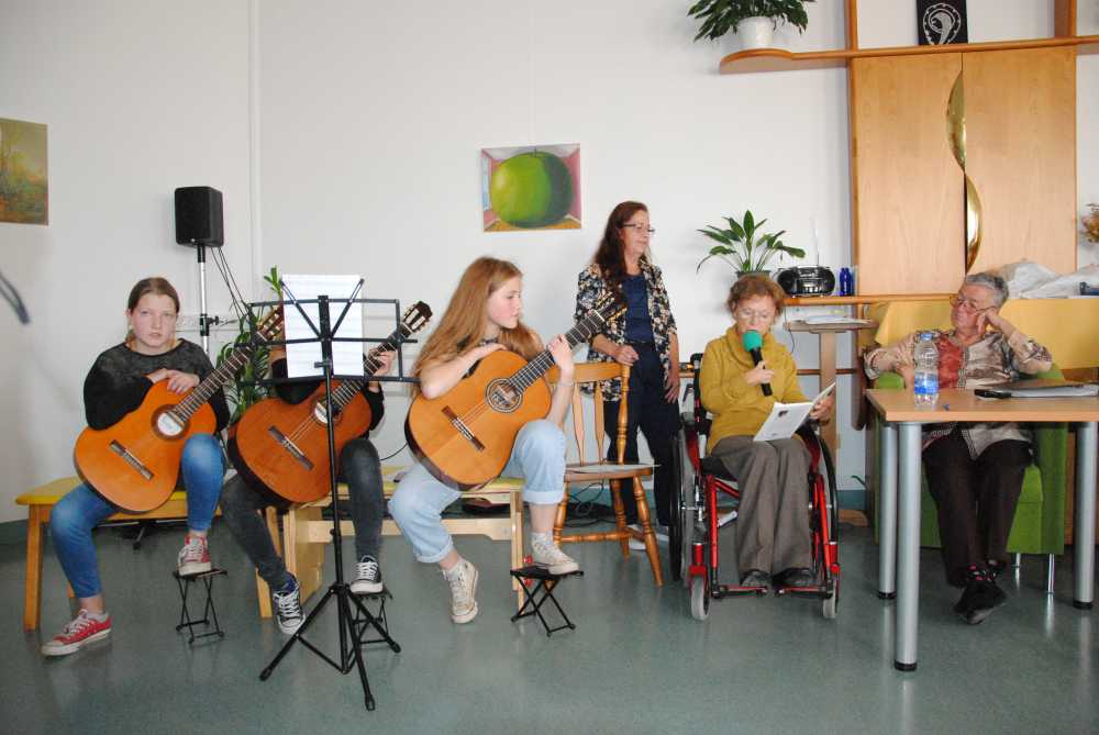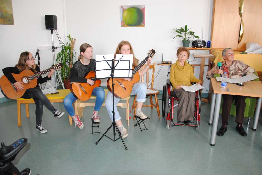 Z glasbenimi vložki so prireditev popestrile in obogatile učenke glasbene šole Logatec – Meta Lukan, Manca in Petra Kavčič. Posebej pa je navdušila pevka, kitaristka in glasbena ustvarjalka Eva Hren, ki je s svojim temperamentnim nastopom v trenutku ustvarila nepozabno vzdušje. Doživeto je zapela pesem »Po jezeru bliz Triglava« in »Čez Šuštarski most.« Pika na i pa je bila pesem »Sijaj, sijaj sončece,« ki jo je s svojim sinčkom in skupaj z nami zapela na zaključku izredno lepega dogodka v Domu starejši v Logatcu. Tokrat so bile organizacijske niti v rokah naše sodelavke Marinke Verbič. Lep kulturni dogodek smo doživeli, ki sta ga podprla JSKD in Občina Logatec.