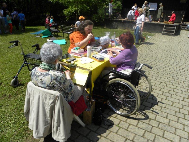 Naše članice, ki se na društvu sestajajo in ustvarjajo vsakih štirinajst dni, so se predstavile z ročnimi spretnostmi izdelovanje voščilnic, malih okrasnih in darilnih predmetov in klekljanjem. Številni obiskovalci (predvsem otroci) so občudovali lepe izdelke, nekateri pa so prisluhnili tudi predstavitvi osnov klekljanja ali pa se poskusili v ročnih spretnosti pri izdelavi voščilnic. Pester kulturni dogodek so obogatili tudi plesne skupine.