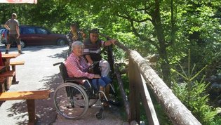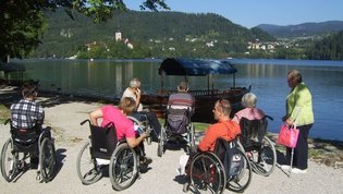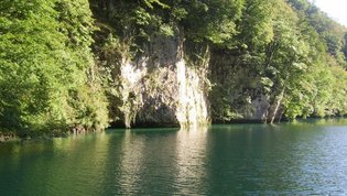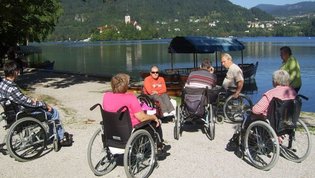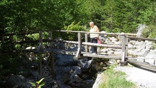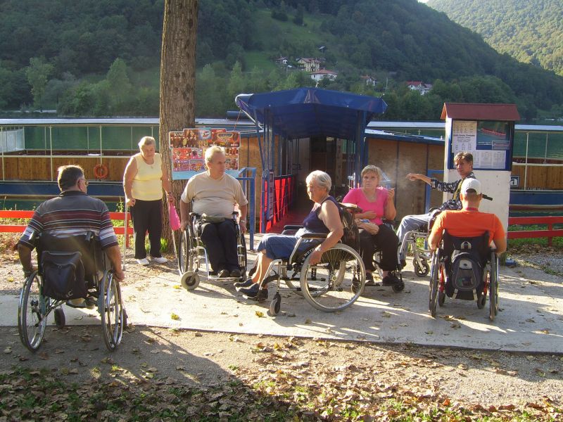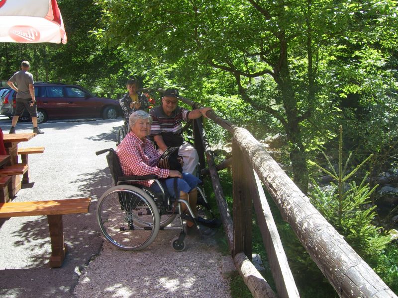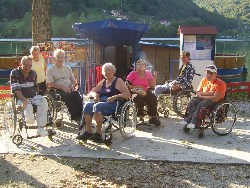 V gorah čas teče hitreje zato smo se morali kar kmalu podati nazaj v dolino. Vendar ne več nazaj na gorenjsko stran, ampak naprej, na Primorsko, v Trento. Pri izviru Soče smo si »iz društvenega nahrbtnika« privoščili kosilo - hvala- se fotografirali za spomin na lepo doživetje in že hiteli dalje. Kajti v Mostu na Soči nas je čakala posebna, parnikom podobna ladja ki jo poganja vodno kolo. Peljala nas je na spoznavanje in ogled znamenitosti tega umetnega jezera ter faune in flore ob njem.