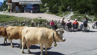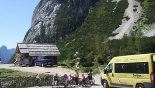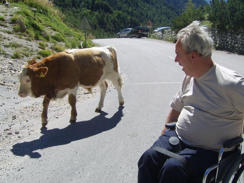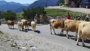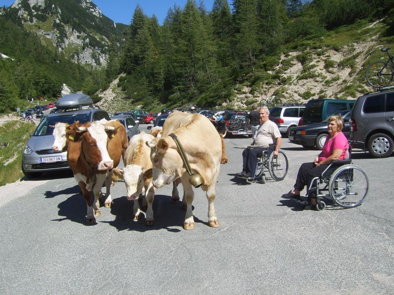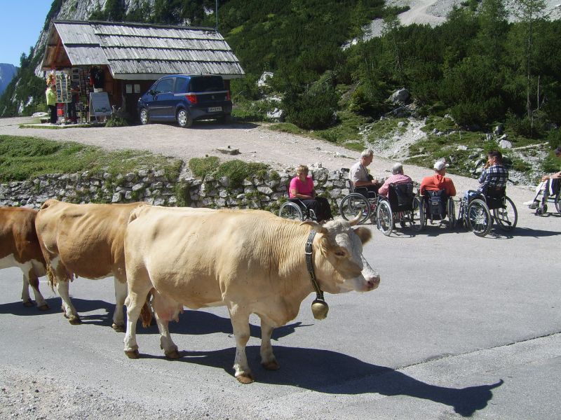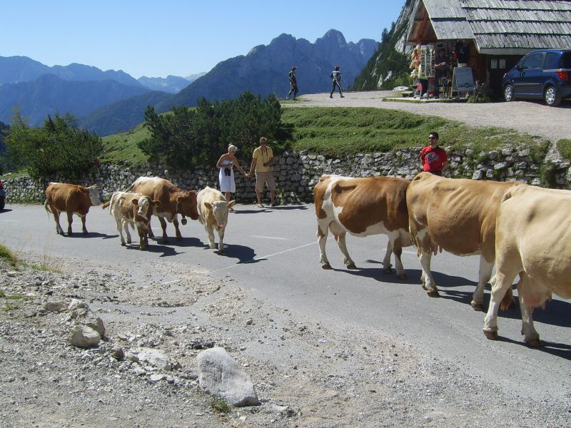 Po številnih serpentinah smo se počasi vzpenjali na naš najvišji prelaz. Vmes smo si kratko ozrli proti Ruski kapelici. Na vrhu 1611m visokega prelaza smo si z zadovoljstvom vzeli čas za oglede, za spoznavanje posameznih vrhov, za majhen prigrizek. Bili so to čudoviti trenutki polni prekrasnih pejsažev barv vseh vrst. Med številnimi planinci so se mirno sprehajale krave in ovce ki so s svojo prisotnostjo prijetno dopolnilo vsemu dogajanju.
