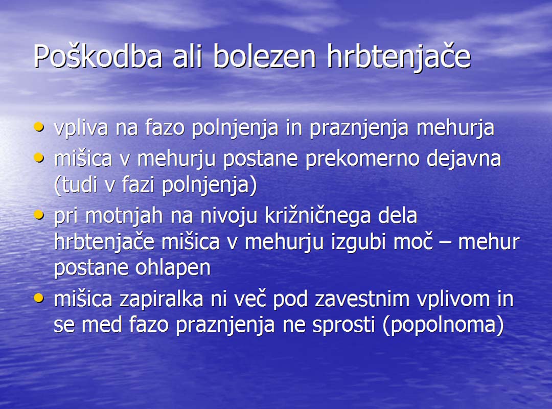 sečni mehur, uriniranje, živčevje in uriniranje, poškodba ali bolezni hrbtenjače, spremembe v mehurju, spremenjena zgradba mehurja, refluks, zastajanje urina v mehurju, obravnava bolnika, zdravljenje z zdravili, kateterizacija, rehabilitacija mehurja in medeničnega dna, uhajanje urina, minimalno invazivna terapija, kirurška terapija, zdravljenje okužb sečil, kontrole in bolezni prostate.