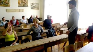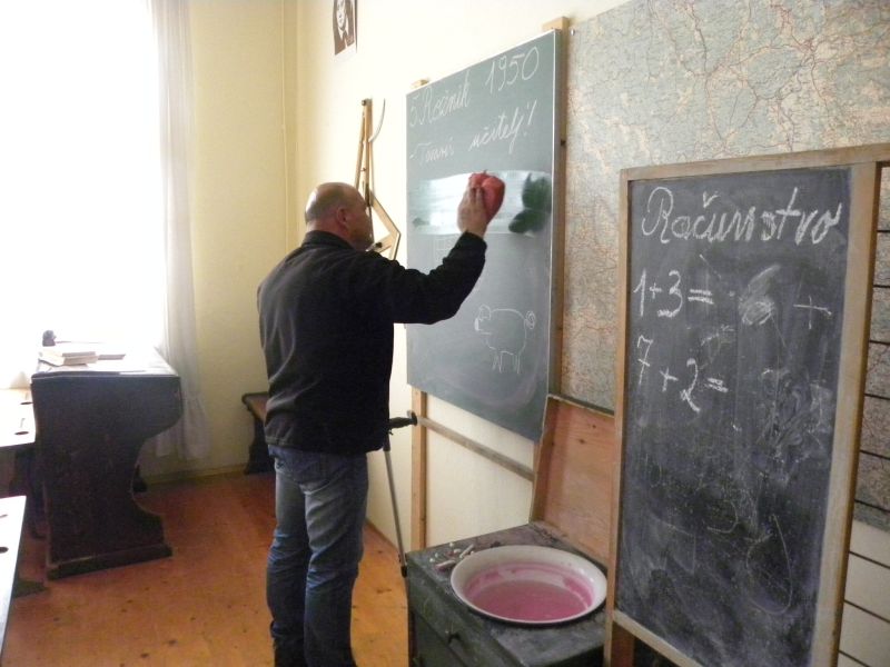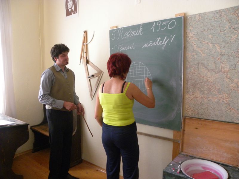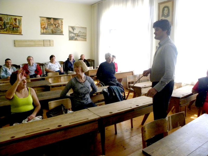 Tam so vsi kot učenci prvega razreda izkusili učno uro v šoli, kakršne so bile v prejšnjem stoletju. Strogi učitelj jih je poučeval o vrednotah ter zgodovini tistega časa s šibo v roki in zrni koruze v kotu učilnice – seveda vse s pridihom humorja…