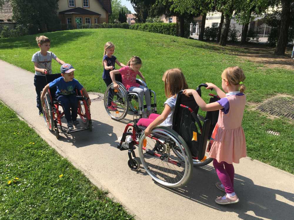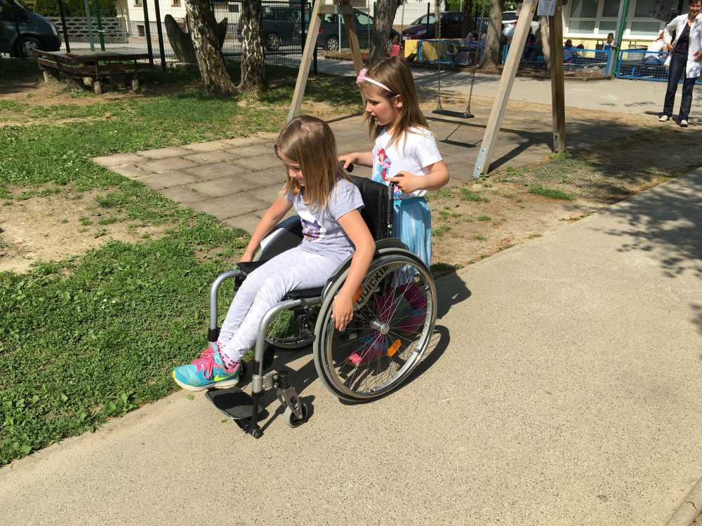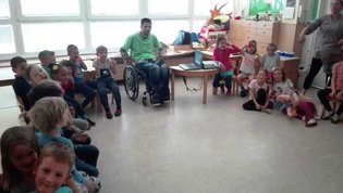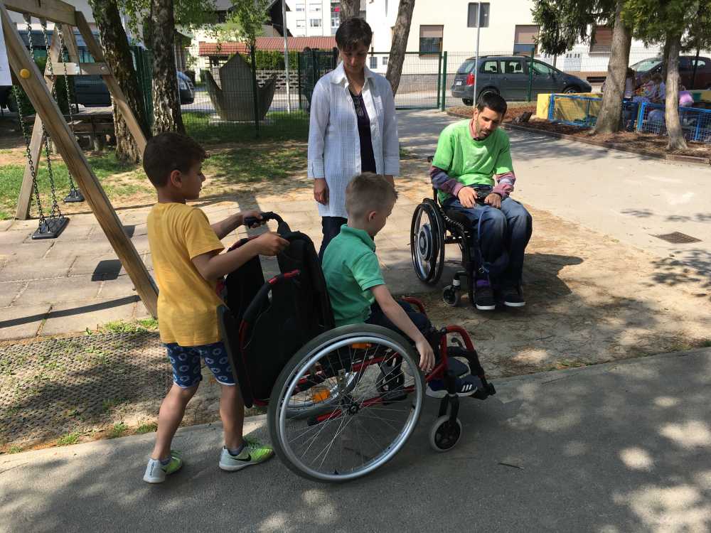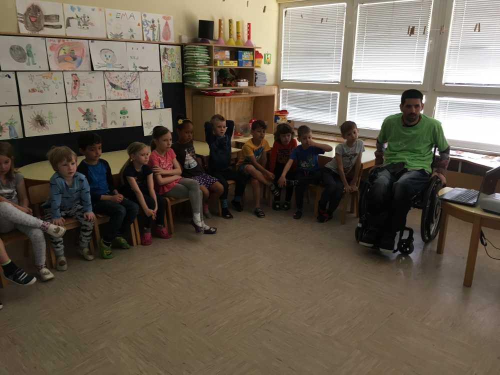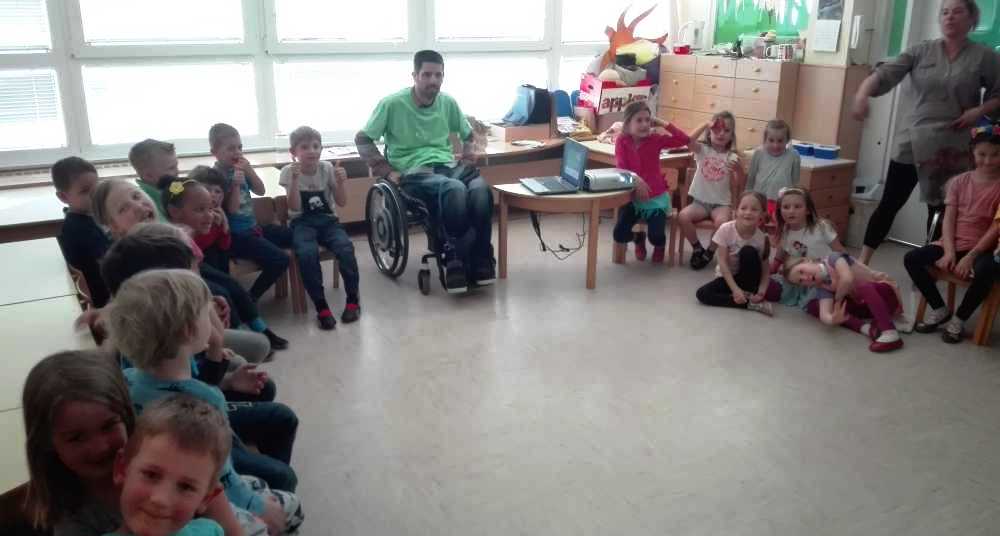 Rok Bratovž je malim nadobudnežem predstavil svojo zgodbo in skozi slike opozoril otroke na mnoge nevarnosti, ki pretijo na njih iz dneva v dan in jih lahko pripeljejo na voziček. Tako je opozoril predvsem na nesreče v prometu, skoke na glavo, plezanja po drevesih in še nekatere druge stvari. Otrokom je pokazal tudi pripomočke za hranjenje, umivanje zob, ki jih uporabljajo huje poškodovani tetraplegiki ter jim izročil nekaj izvodov naše revije Izziv, brošure o društvu in knjigo Lev Rogi - Rogi najde srečo. Zgodba opisuje leva, ki je padel z lestve in si poškodoval hrbtenjačo in tako pristal na invalidskem vozičku. Ogledali so si tudi veliko slik in nekaj videov, da so lahko videli kaj vse člani društva počnemo v svojem življenju. Po končanem predavanju pa so se lahko poizkusili v vožnji z invalidskimi vozički. Otroci so Roku v zahvalo izročili ročno narejenega Levčka iz gline.