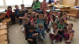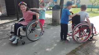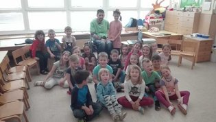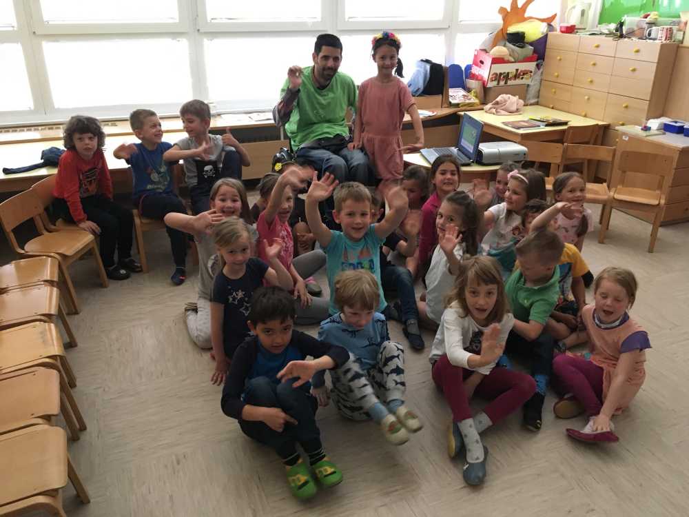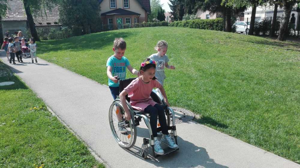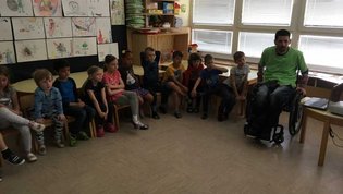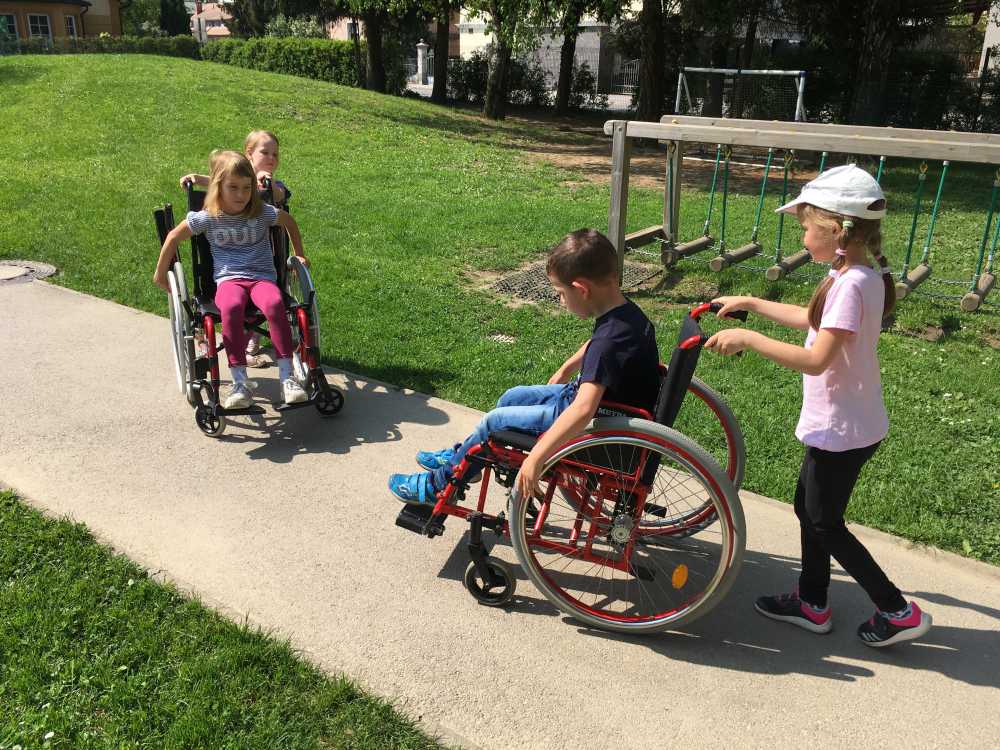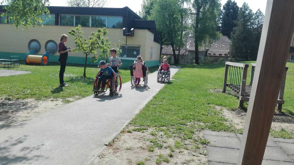 Rok Bratovž je malim nadobudnežem predstavil svojo zgodbo in skozi slike opozoril otroke na mnoge nevarnosti, ki pretijo na njih iz dneva v dan in jih lahko pripeljejo na voziček. Tako je opozoril predvsem na nesreče v prometu, skoke na glavo, plezanja po drevesih in še nekatere druge stvari. Otrokom je pokazal tudi pripomočke za hranjenje, umivanje zob, ki jih uporabljajo huje poškodovani tetraplegiki ter jim izročil nekaj izvodov naše revije Izziv, brošure o društvu in knjigo Lev Rogi - Rogi najde srečo. Zgodba opisuje leva, ki je padel z lestve in si poškodoval hrbtenjačo in tako pristal na invalidskem vozičku. Ogledali so si tudi veliko slik in nekaj videov, da so lahko videli kaj vse člani društva počnemo v svojem življenju. Po končanem predavanju pa so se lahko poizkusili v vožnji z invalidskimi vozički. Otroci so Roku v zahvalo izročili ročno narejenega Levčka iz gline.
