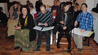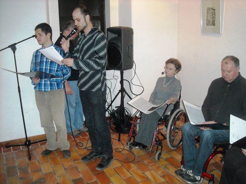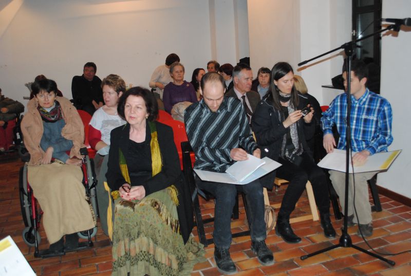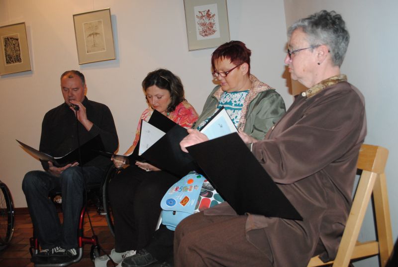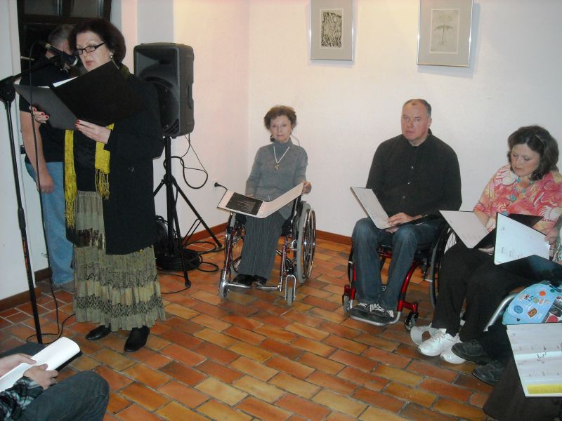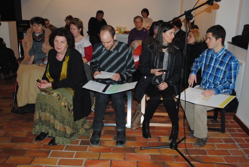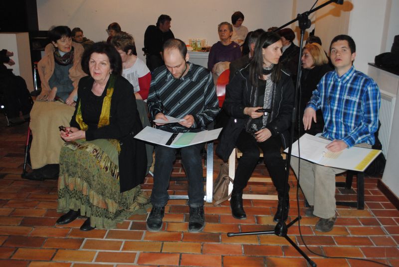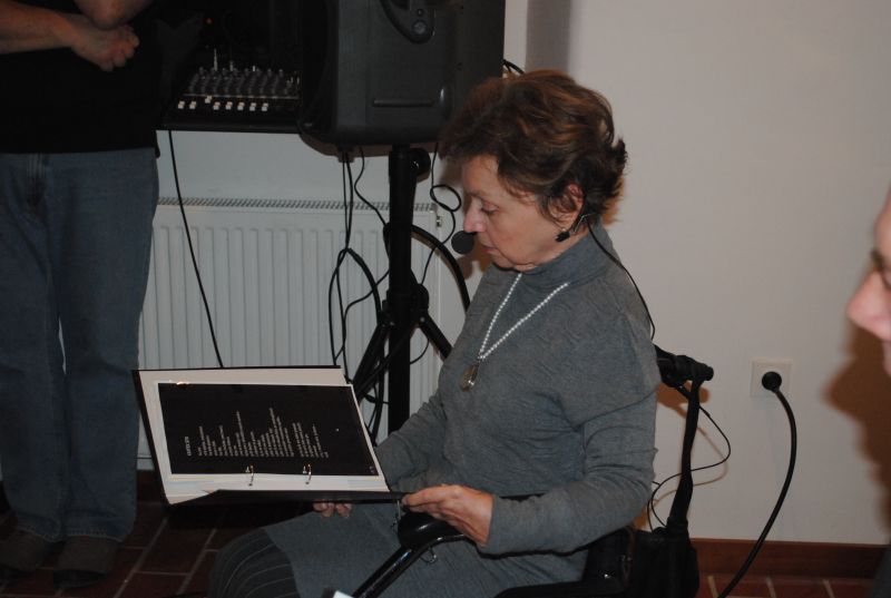Ob glasbeni sceni Zlatka Novaka so poezijo pesnice prebirale recitatorke Društva paraplegikov ljubljanske pokrajine – Marjana Lavrin, Alenka Tratnjek, Ana Feržan in vodja kulture pri Zvezi paraplegikov Slovenije Metod Zakotnik. Nekaj svojih pesmi je predstavila pesnica sama, prebirali pa še: Matjaž Vidmar, Anže Tratnjek in Vlasta Rebek-Dolenc.
