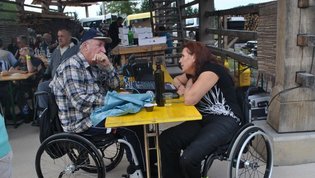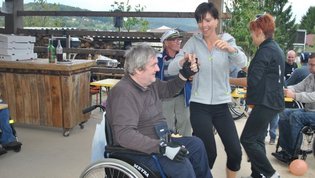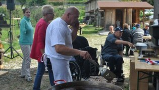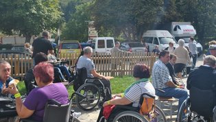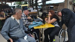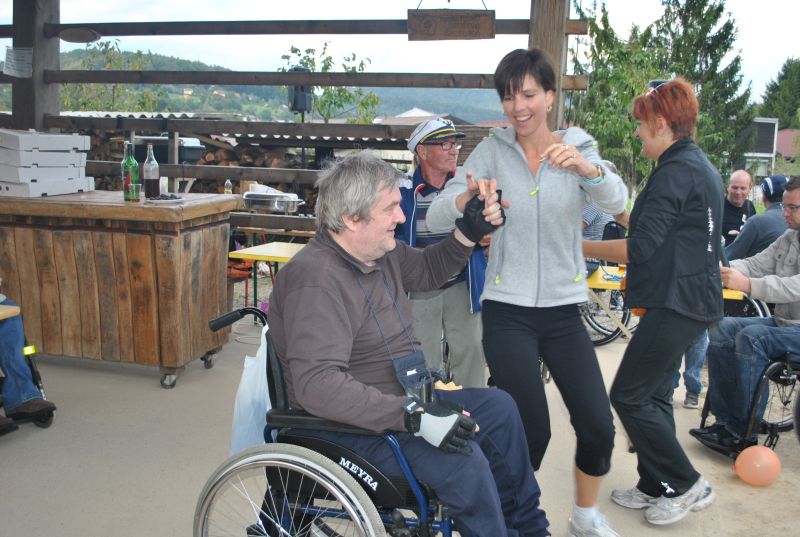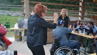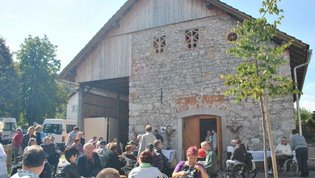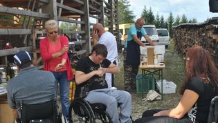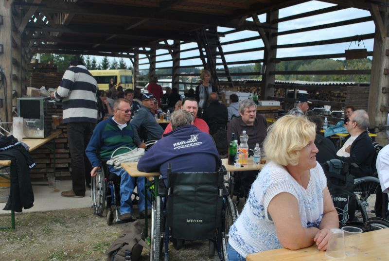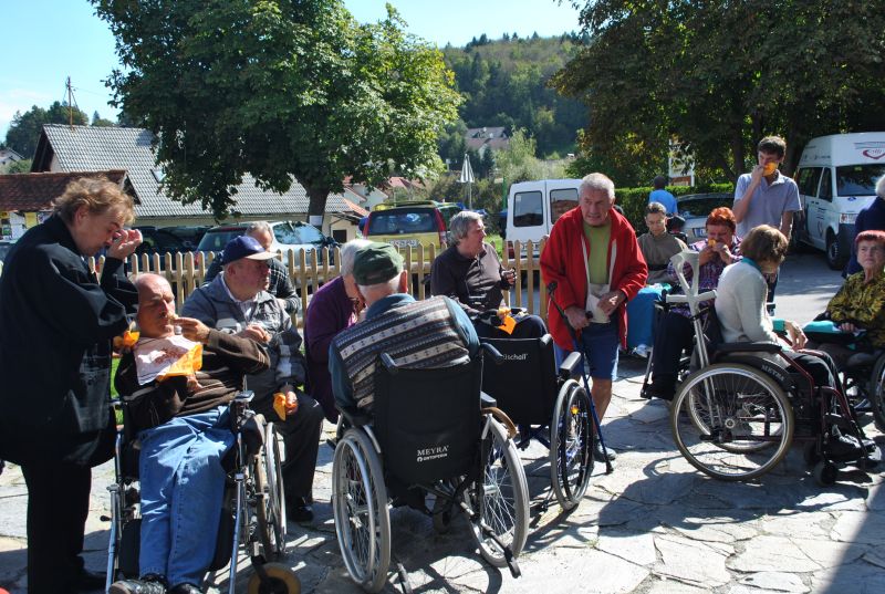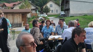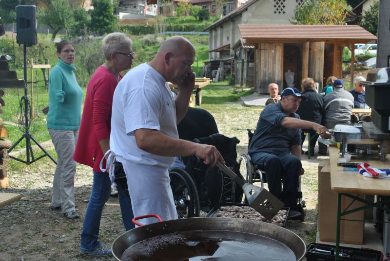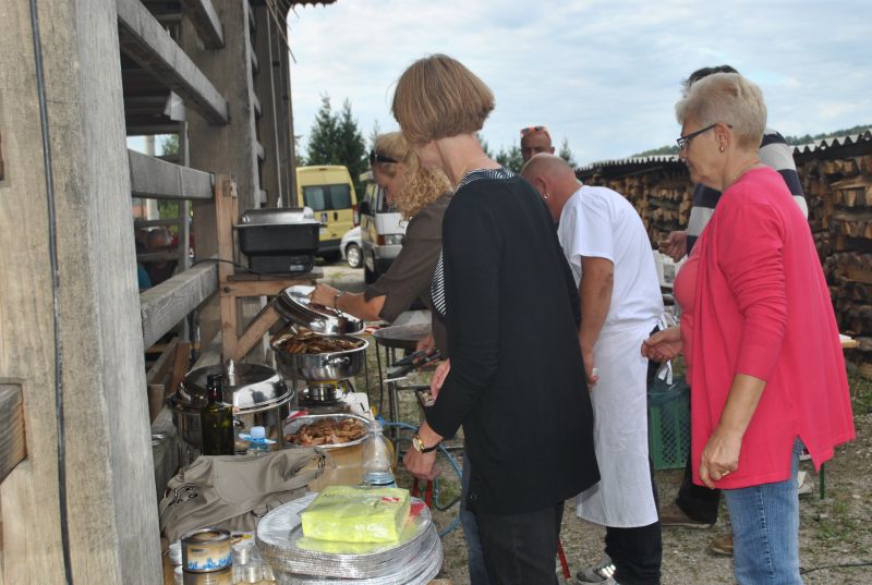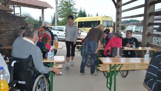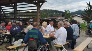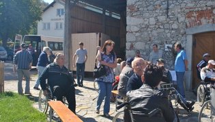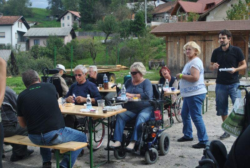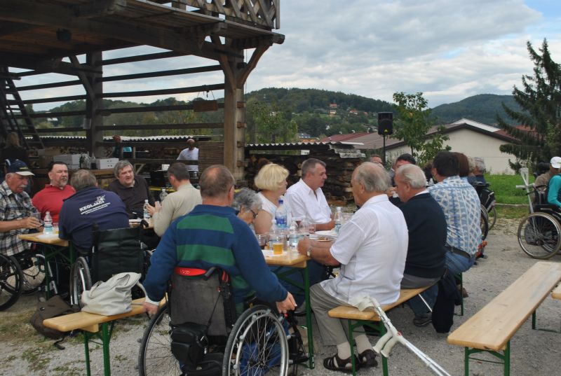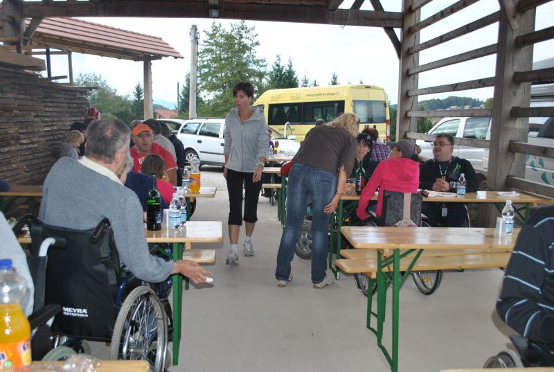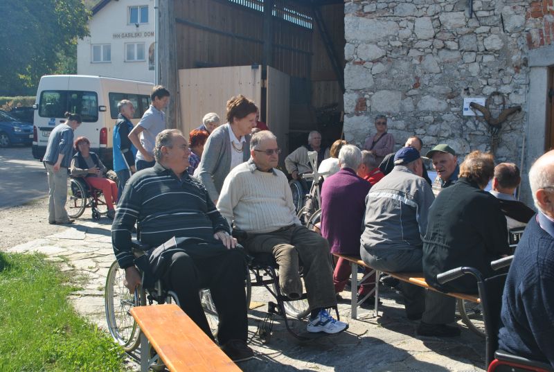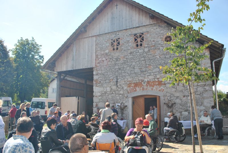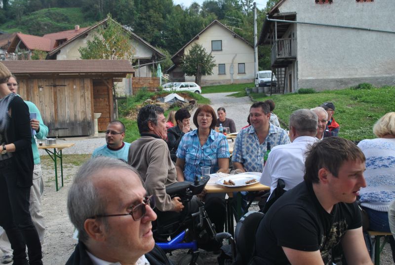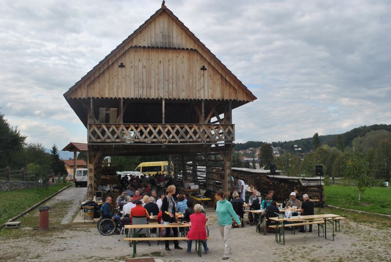 Ruskov kozolec je turistična zanimivost Škofljice, saj pod njim pripravljajo različne prireditve, tržnice z lokalno pridelano hrano, sejme rokodelskih in obrtniških izdelkov, srečanja, v nadstropju pa razstave. Tam so nam naši člani pripravili dobrote na žaru, postregle pa naše osebne asistentke. Poskrbeli smo še za dobro glasbo in prijetno druženje. Ja, lep, zanimiv, podučen in vesel dan smo ob prehodu poletja v jesen preživeli. Da pa smo vse to doživeli, je bilo treba opraviti kar precej potov in telefonskih klicev, saj je treba pomisliti prav na vse naše potrebe. Hvala vsem, ki ste se trudili, še posebej pa Mojci Burger, ki je imela v rokah vse organizacijske niti.