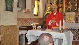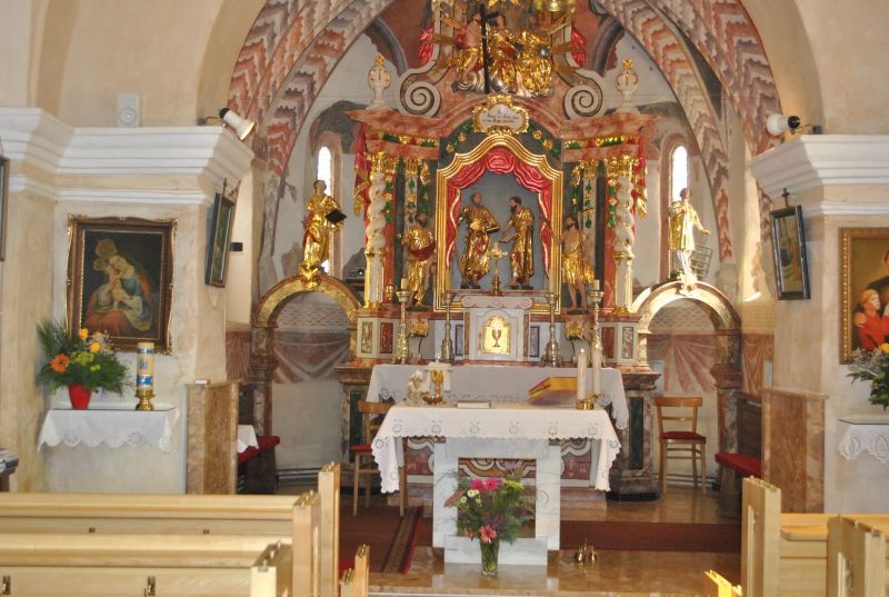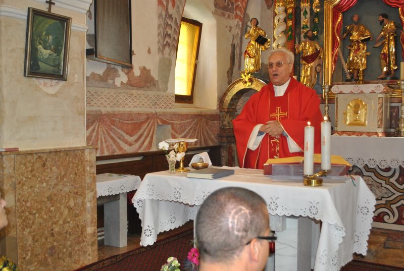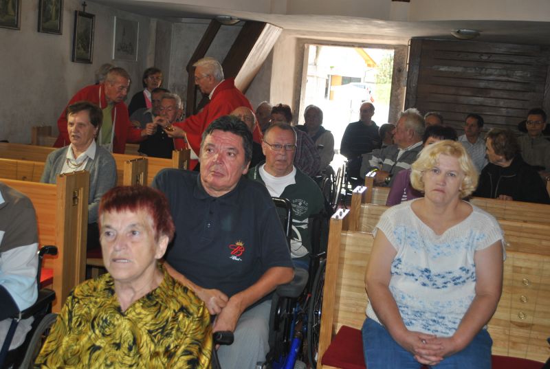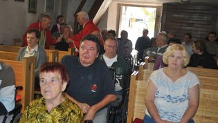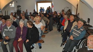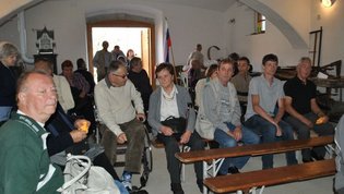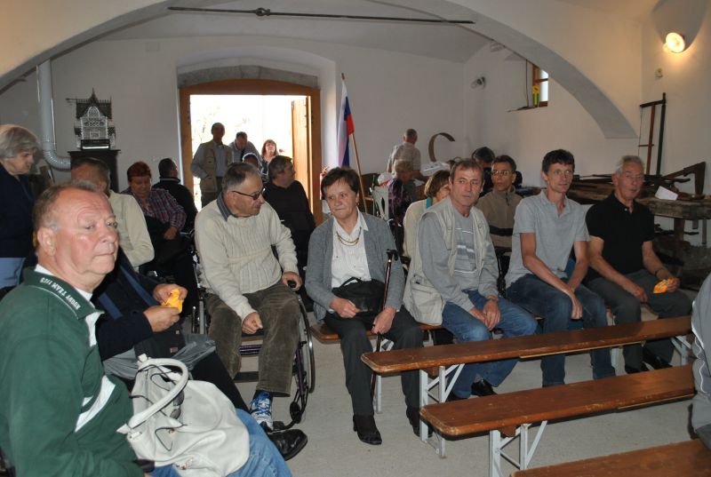 Za tem smo si ogledali še cerkev sv. Simona in Jude, ki je razglašena za kulturni spomenik državnega pomena. Zametki sedanje cerkve segajo v prvo polovico 15. stoletja, hrani pa čudovita bogastva preteklosti. Med njimi tudi freske, ki so delo gotskega slikarja Janeza Ljubljanskega. Nekateri člani so se udeležili sv. maše, ki jo je posebej za to priložnost in naše pokojne člane daroval domači župnik. Po ogledu smo se še malo posladkali z okusnimi krofi, nato pa se zapeljali do znamenitega Ruskovega kozolca na Škofljici, kjer je bilo osrednje prizorišče našega jesenskega srečanja.
