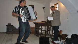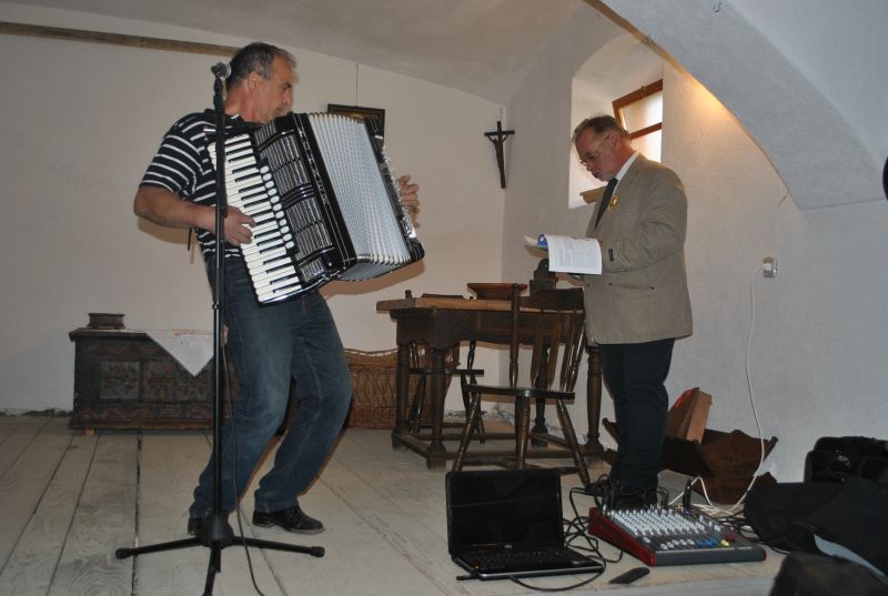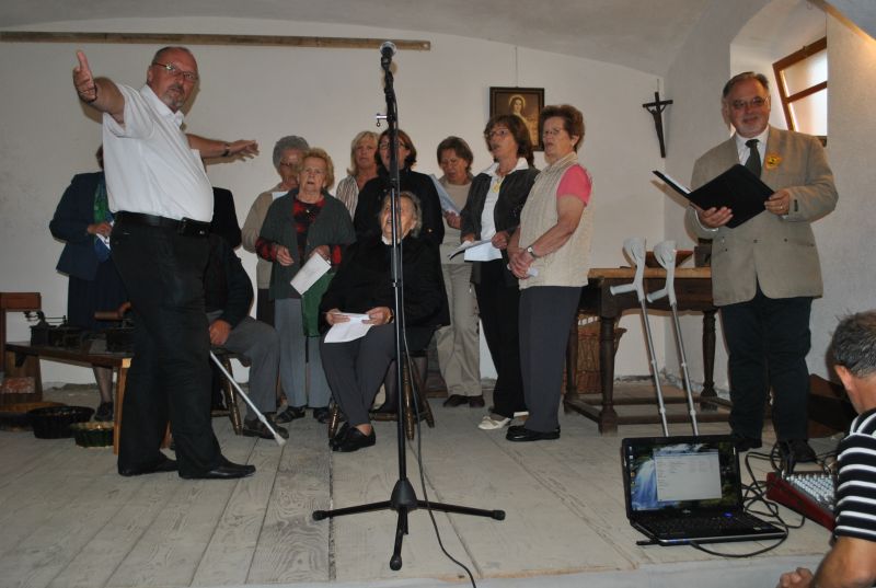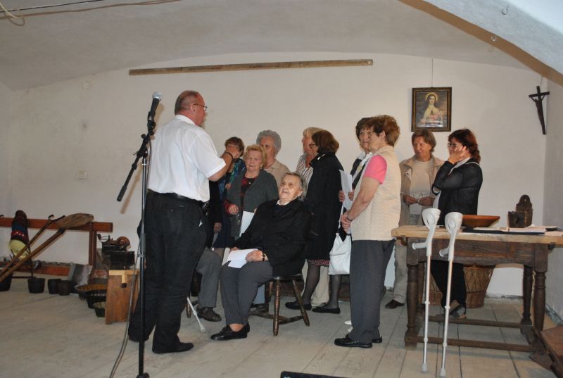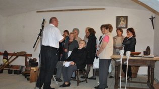 Najprej smo se podali na Pijavo Gorico, kjer nam je ob ogledu večnamenskega prostora, ki mu domačini pravijo skedenj, dobrodošlico zaželel občinski svetnik Peter Pal. Na kratko nam je predstavil znamenitosti in zgodovino kraja na obrobju Ljubljanskega barja, nato pa je o skednju, ki služi za pripravo različnih etnografskih razstav in prireditev, nekaj zanimivosti povedal še Andrej Ciber. V pritličju skednja je stalna razstava vsega kmečkega orodja in predstavlja življenje na kmetiji pred več kot sto leti. Zbranih je skoraj 300 eksponatov in za celotno zbirko je zaslužen prav Andrej Ciber. Ogled in predstavitev so popestrili Čotovi pevci pod vodstvom zborovodje Janka Novaka, pridružil pa se jim je še harmonikar in pevec Brane Jereb. Za resnično lep in gostoljuben sprejem se je Petru Palu in koordinatorki srečananja članici občinske uprave Brigiti Marinšek, s skromnim darilom zahvalila podpredsednica društva Mirjam Kanalec.