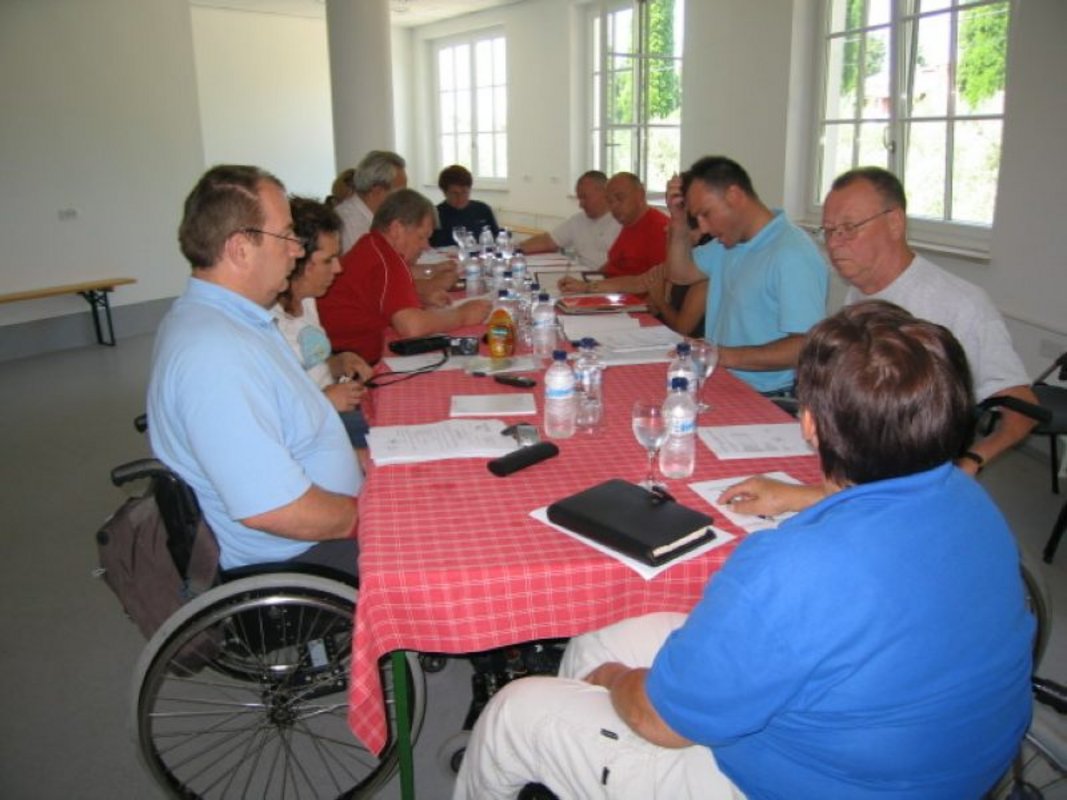 Upravni odbor društva je 4. redno sejo imel v prostorih Doma paraplegikov v Pacugu. Prisotni so bili še: predsednik Nadzornega odbora, predsednik Disciplinske komisije, referent za socialno področje, socialni poverjenik Rafko Jurjevčič, vodja prostovoljcev in osebna asistentka Nevenka.