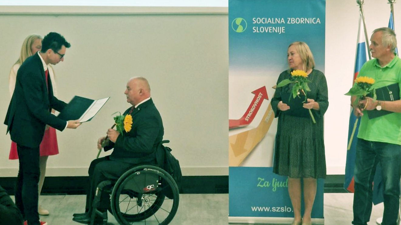 Opozoril je na različne težave pri izvajanju Zakona o osebni asistenci. Uporabnikov osebne asistence je v tem trenutku več kot 3.800, zaposlenih približno 8.500 osebnih asistentov, okrog 1.500 oseb pa prejema komunikacijski dodatek. Dane Kastelic je na tem dogodku prejel tudi posebno častno priznanje Socialne zbornice Slovenije. Iskrene čestitke! Slovenije!