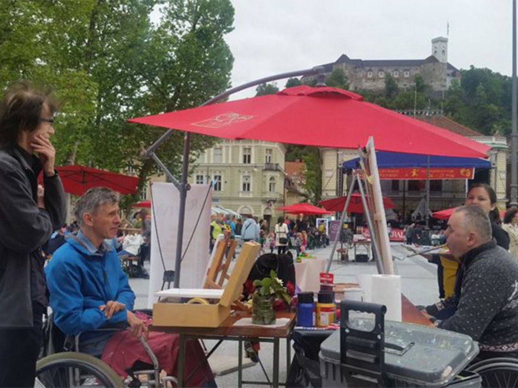 Med sodelujočimi sta bila tudi slikarja, ki sta člana Mednarodnega združenja slikarjev, ki slikajo z usti ali nogami – polnopravni član Benjamin Žnidaršič in naš štipendist Željko Vertelj.