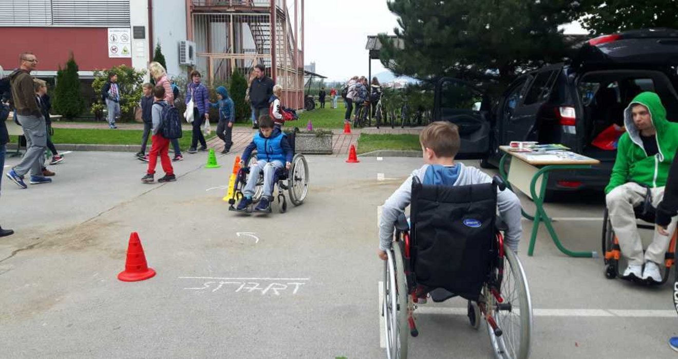 Naše društvo je svojo dejavnost predstavilo s publikacijami, učenci so se med stožci na spretnostni vožnji zapeljali z invalidskimi vozički, ogledali pa so si tudi avtomobil na ročno upravljanje.