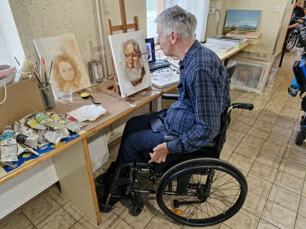 V domu paraplegikov v Semiču je med 20. in 25. oktobrom 2025 potekala tradicionalna jesenska likovna kolonija »Belokranjska jesen 2025« v sklopu občinskega praznika Občine Semič. Slikarji likovne sekcije Zveze paraplegikov Slovenije so se pod mentorskim vodstvom Rassa Causeviga in Ljudmile Turk izpopolnjevali v različnih tehnikah slikanja: v akrilu in olju na platno, akvarelu, risbi z ogljem in svinčnikom. Tople odtenke jesenskih barv so slikarji s čopiči in lopatkami nanašali na bela slikarska platna in risalne liste v notranjem delovnem prostoru doma, zunaj pa pod toplimi sončnimi žarki našli čas tudi za pitje kave ali čaja, izmenjavi izkušenj ter prijetnem klepetu. Nastale so čudovite slikarske upodobitve belokranjske pokrajine, tihožitij, portretov in abstrakcij. Vabilu so se odzvali tudi učenci s spremstvom učiteljice in učitelja iz osnovne šole Belokranjskega odreda Semič. Vodja likovne kolonije Metod Zakotnik je učence v lepem vremenu pričakal na dvorišču Doma paraplegikov in jim zaželel dobrodošlico. Najprej jim je opisal in predstavil invalidnost, o najpogostejših vzrokih za nastanek invalidnosti pri poškodbi hrbtenjače, uporabi tehničnih pripomočkov pri gibanju in aktivnostih paraplegikov in tetraplegikov. Nato so si ogledali slikanje slikark in slikarjev. Najbolj zanimivi so jim bili slikarji, ki slikajo z usti in pozorno prisluhnili njihovim zgodbam o sebi. Tudi sami so se potrudili in se skušali po najboljših močeh podpisati ali kaj narisati na list papirja s svinčnikom v ustih. Delavnicam sta se pridružili tudi osnovnošolki Hana Rauh in Zala Krušec, ki sta na platni naslikali motiva belokranjske pokrajine.