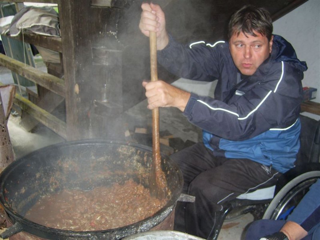 Za prehrano so skrbeli: Berčon, maserka Mateja in njen brat Bošti. Golaž so začeli kuhati že ob šestih zjutraj, za specialitete na žaru pa so poskrbeli kasneje.