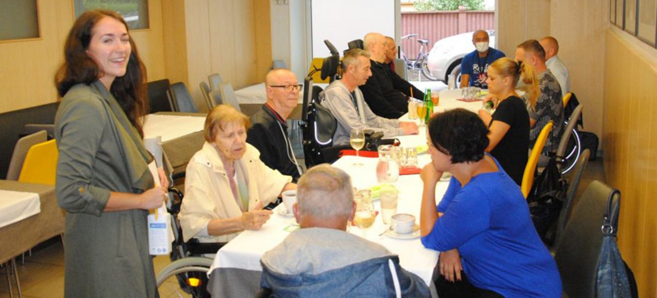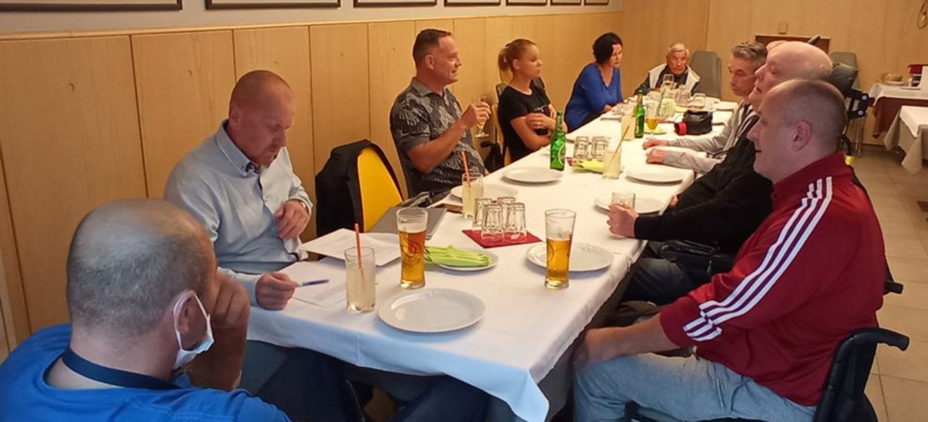 V prostorih gostišča se je zbralo deset njegovih članov, ki so jih spremljali štirje osebni asistenti, vodja mreže socialnih poverjenikov Nina Černe in predsednica društva Mirjam Kanalec.