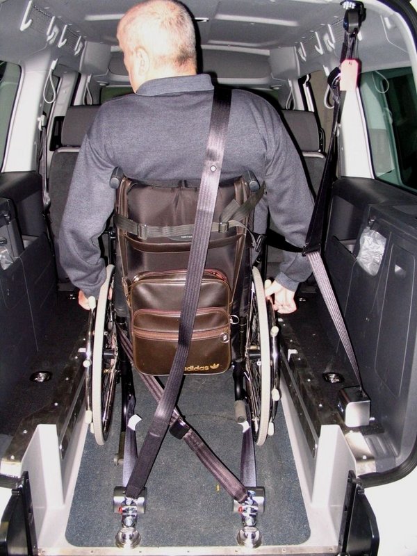 Caddy Maxi ima eno veliko napako. Prostor, kjer je med vožnjo pritrjen invalidski voziček je za večino uporabnikov prekratek. Tako zadnja kolesa vozička ostanejo še na klančini zato voziček visi nazaj. Seveda je vožnja za osebo na vozičku v takem položaju zelo neudobna ali celo nemogoča. Že po kratkem času invalida začne boleti vrat, naprej se pa zaradi nazaj visečega vozička ne more nagniti. Le tisti invalidi, ki imajo zelo kratke vozičke med vožnjo sedijo v vodoravnem položaju. Udobneje pa se vozijo invalidi na električnih vozički, ki jih lahko nagibajo. Vozilo ima precej trdo vzmetenje, zato na slabših cestah precej trese. Pri večjih hitrostih je vozilo tudi dokaj hrupno. Druge prilagoditve so zelo dobro izvedene.
