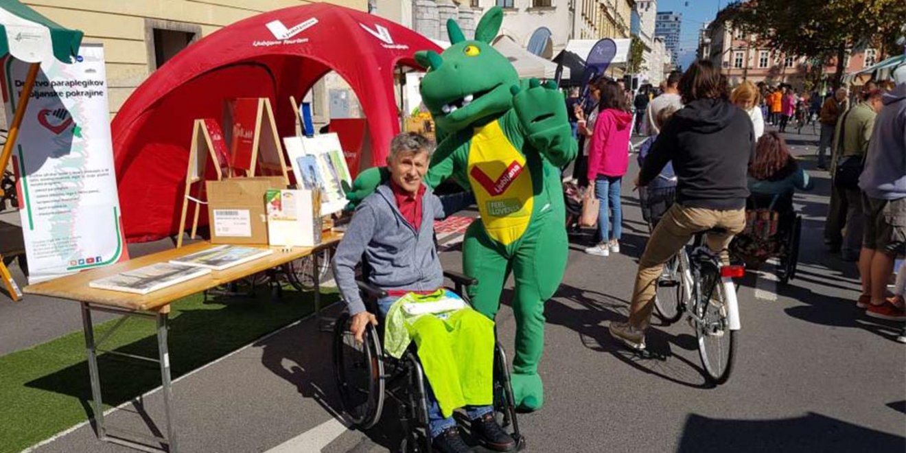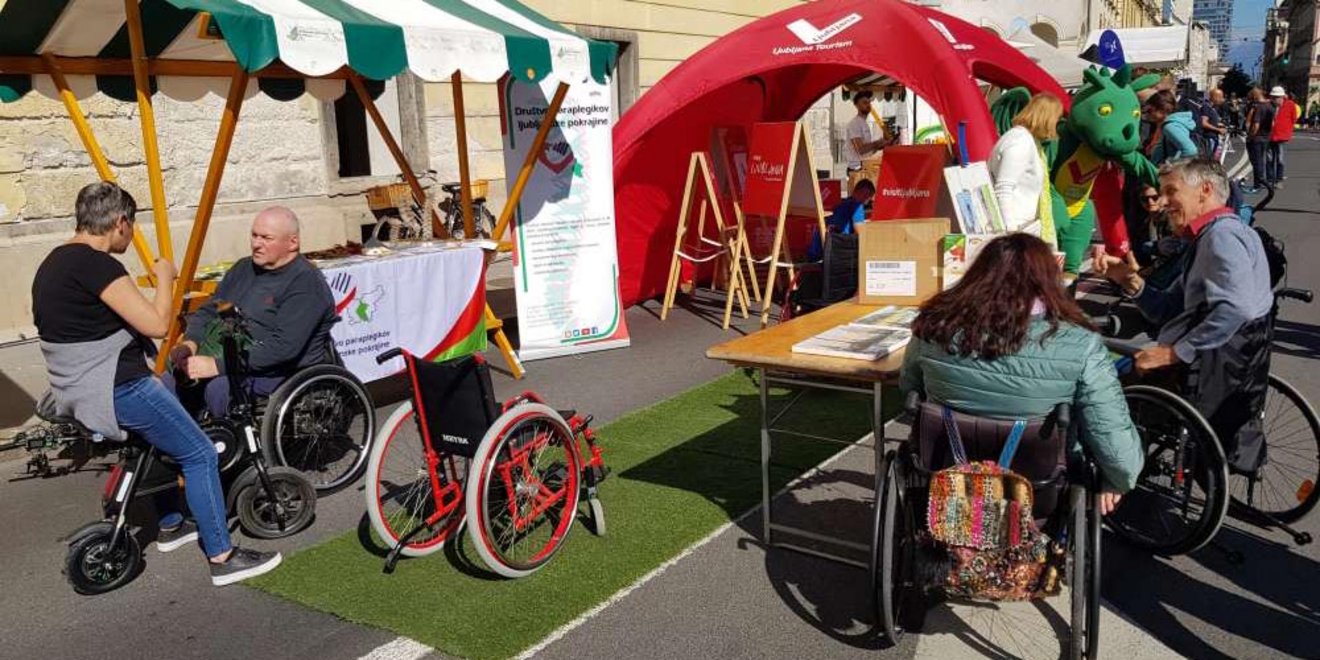 V lepem sončnem vremenu je bilo kljub nekoliko hladnem dopoldnevu na "Uličnem festivalu - Mestu brez avtomobila," precej živahno. Na naši stojnici smo številne mimoidoče seznanjali s poslanstvom društva, pokazali pa tudi različne manjše pripomočke, s katerimi težje gibalno ovirani člani, lažje premagujejo invalidnost.