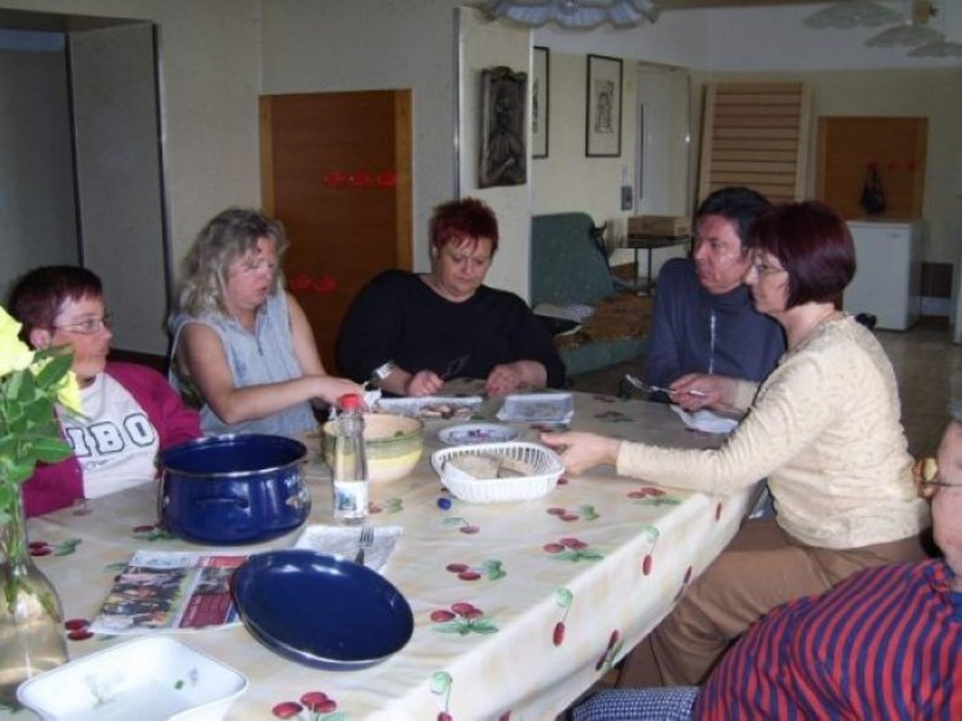 Zamenjale so jih ženske iz Aktiva žena, ki ga sedaj vodi Marjana Lavrin. Bile so številnejše, žal pa niso imele sreče z vremenom. Zgleda, da so prvi večer preveč klepetale. No, vsaka stvar je za nekaj dobra. Vse dni so ostale v domu in pridno izdelovale unikatni nakit, ki ga bomo imeli priložnost videti na tradicionalni razstavi v informacijski pisarni MOL od 6. junija naprej. Seveda so se tokrat še dodatno preizkusile v kulinarični umetnosti, za obogatitev duše pa prebirale pesmi naše pesnice Darinke Slanovec.