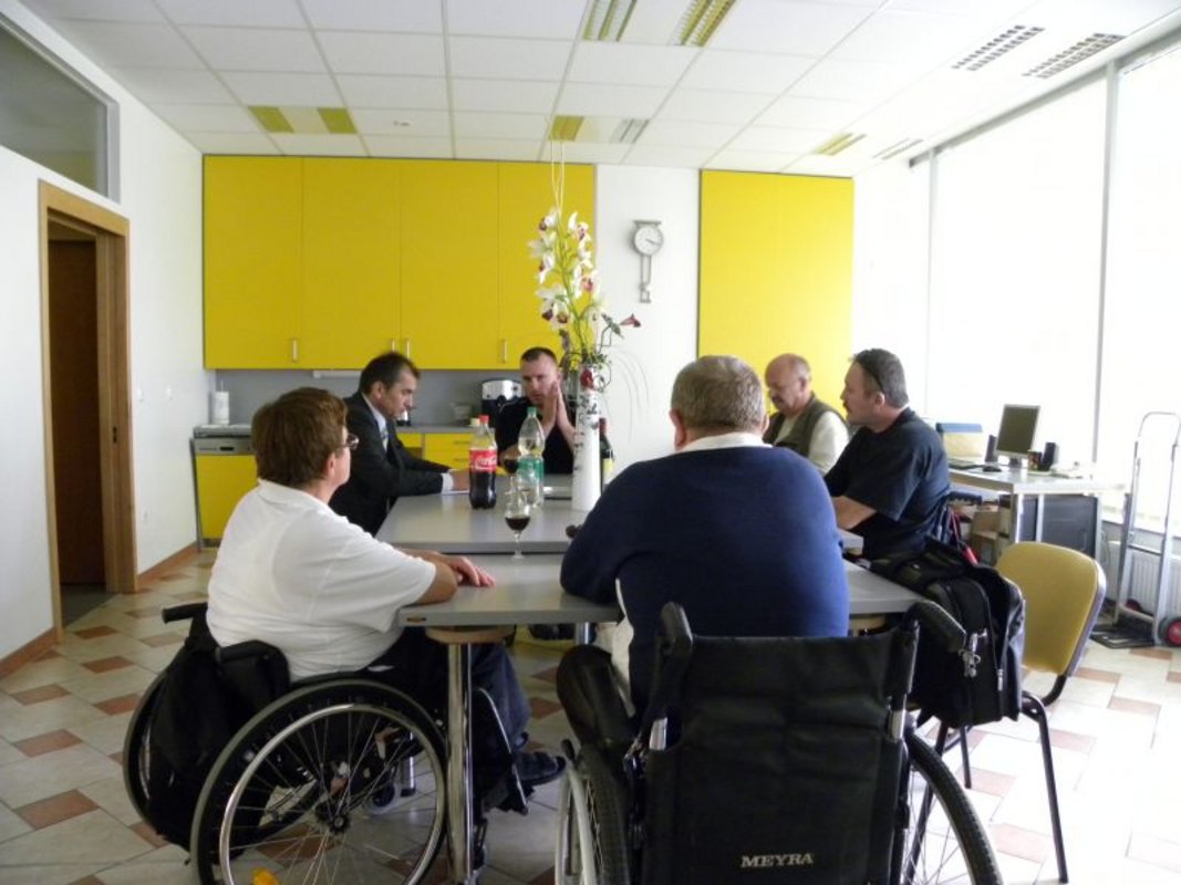Predsednik društva Gregor Gračner, športni referent Robert Žerovnik, naša odlična kegljačica Cvetka Štirn, kegljač Zlatko Bernašek ter pobudnika Slavko Ivančič in Emil Filipič, so se z županom pogovarjali tudi o različnih težavah s katerimi se paraplegiki in tetraplegiki vsakodnevno srečujemo. Od socialnih problematik do arhitekturnih ovir, ki so prisotne pri večini naših članov. Tudi pri tistih, ki živijo v občini župana Janka Vebra.