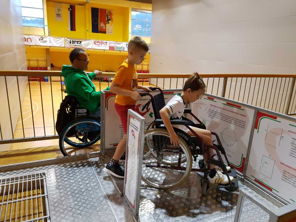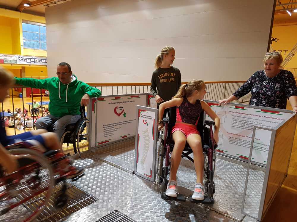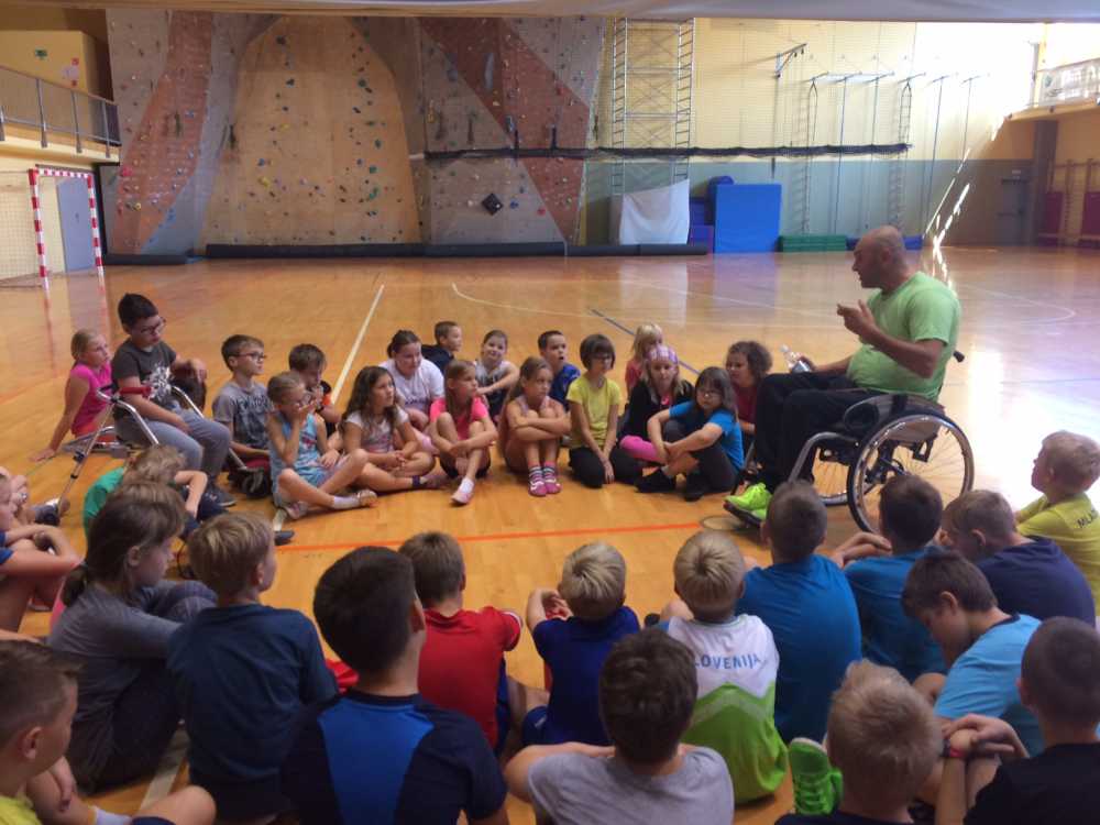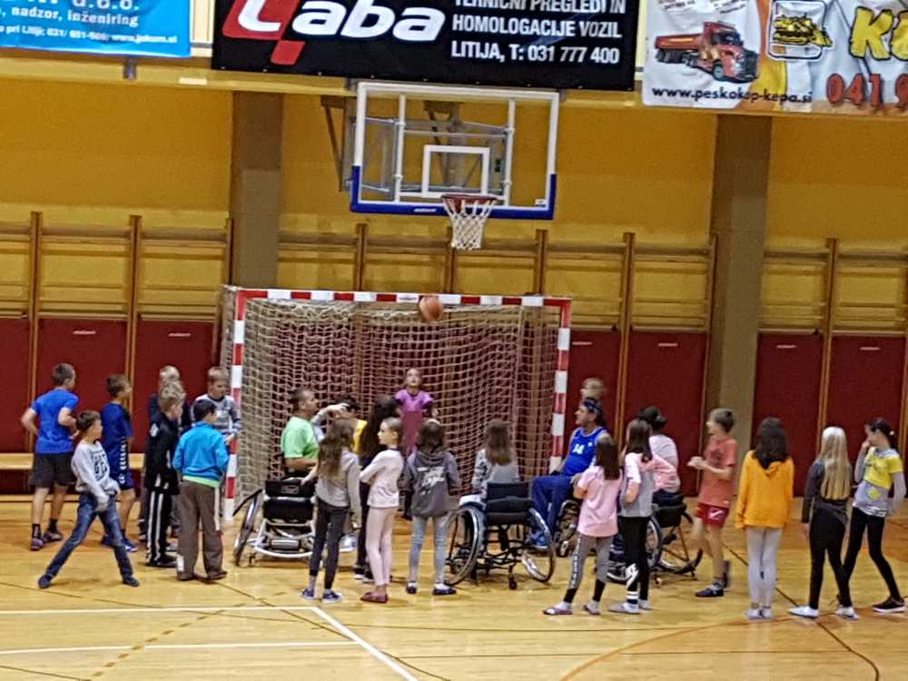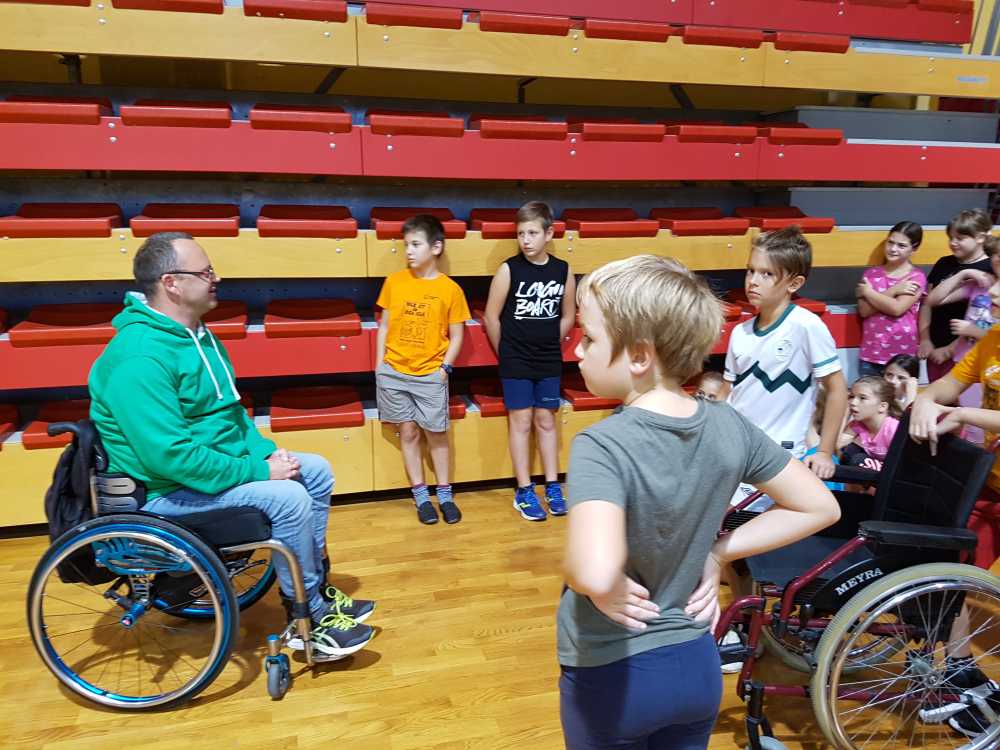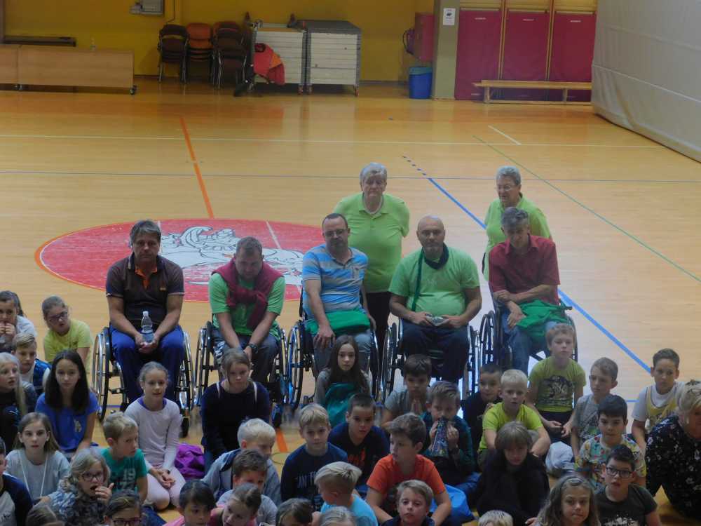 Poleg predstavitve poslanstva našega društva in vzrokov, ki so botrovali naši invalidnosti, so se učenci na poligonu srečali z arhitekturnimi ovirami, se preizkusili v slikanju z usti in tekmovali v namiznem tenisu in košarki na vozičkih. Tako je skoraj 150 učencev in tudi nekaj učiteljic prisluhnilo našim osebnim zgodbam in še mnogo drugim zanimivim stvarem, ki se tičejo naših poškodb. Opozorili smo jih predvsem na kaj naj bodo pozorni v prometu, pri skakanju v vodo na glavo, plezanju po drevesih in pri raznih športih, kjer tudi pride do nesreč. In tudi pri bližajočih se zimskih radostih, saj vemo, da nesreča nikoli ne počiva. Poleg Slavka, Andreja, Željka, Ljubiše in Roka, sta se ekipi pri predstavitvi košarke pridružila tudi domačina Jože in Boštjan, saj oba že dolgo let igrata košarko na vozičkih.