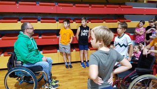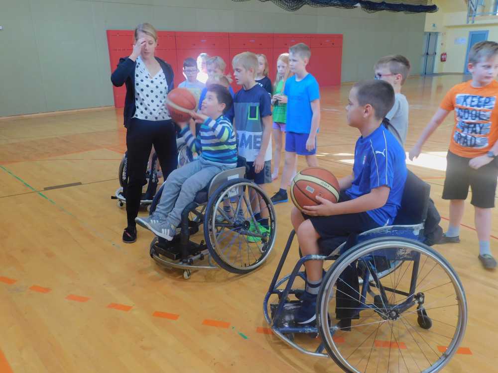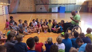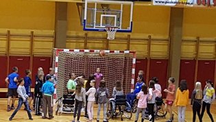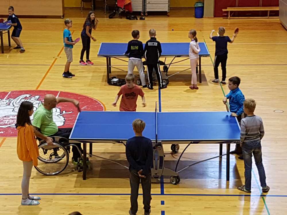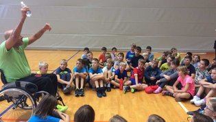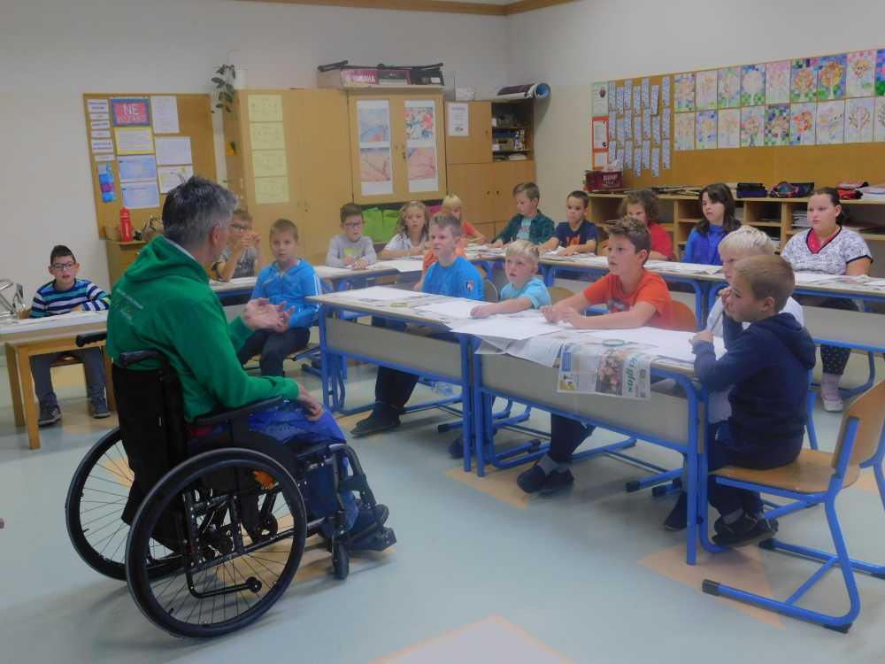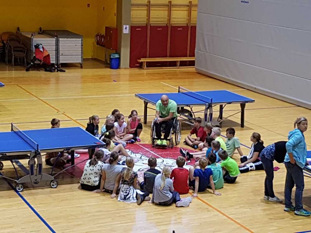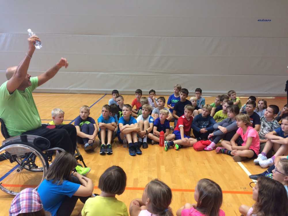 Poleg predstavitve poslanstva našega društva in vzrokov, ki so botrovali naši invalidnosti, so se učenci na poligonu srečali z arhitekturnimi ovirami, se preizkusili v slikanju z usti in tekmovali v namiznem tenisu in košarki na vozičkih. Tako je skoraj 150 učencev in tudi nekaj učiteljic prisluhnilo našim osebnim zgodbam in še mnogo drugim zanimivim stvarem, ki se tičejo naših poškodb. Opozorili smo jih predvsem na kaj naj bodo pozorni v prometu, pri skakanju v vodo na glavo, plezanju po drevesih in pri raznih športih, kjer tudi pride do nesreč. In tudi pri bližajočih se zimskih radostih, saj vemo, da nesreča nikoli ne počiva. Poleg Slavka, Andreja, Željka, Ljubiše in Roka, sta se ekipi pri predstavitvi košarke pridružila tudi domačina Jože in Boštjan, saj oba že dolgo let igrata košarko na vozičkih.