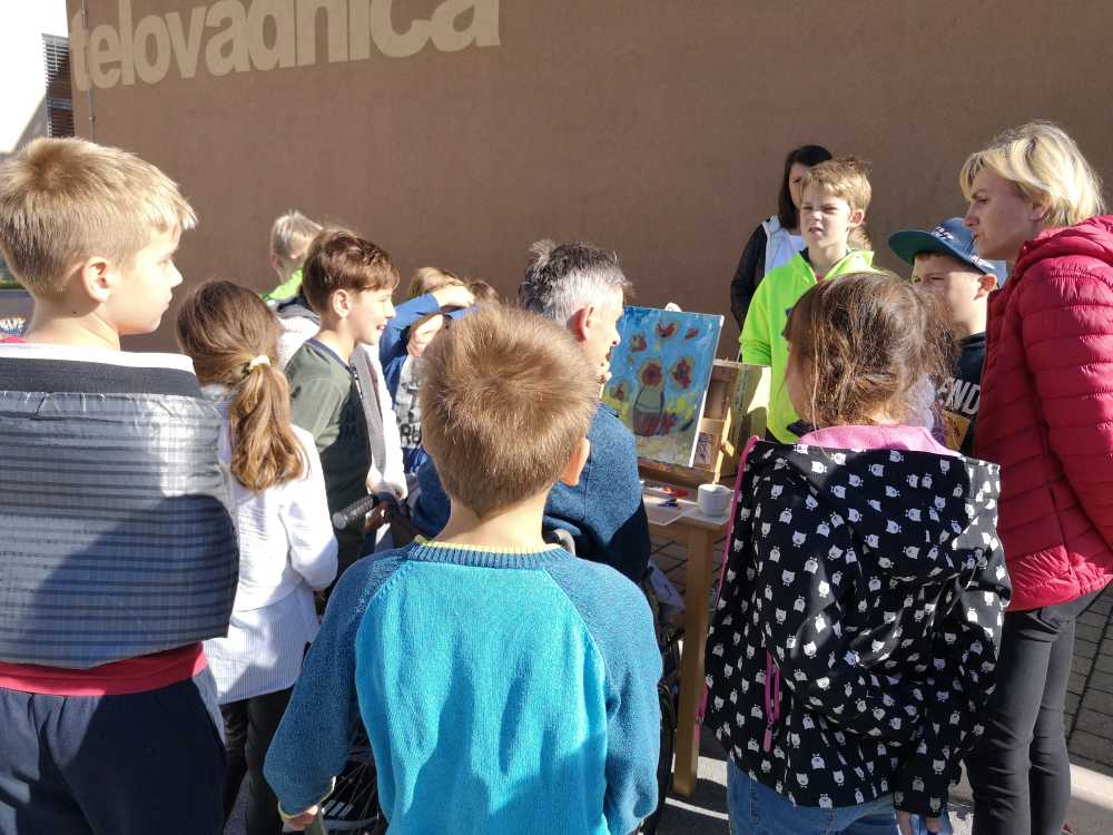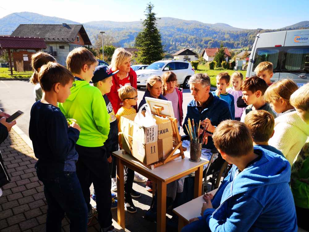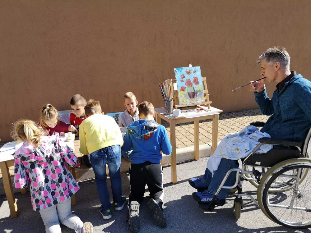 Z velikim občudovanjem so na tretji delavnici opazovali našega slikarja Željka Vertlja, ki zaradi težke gibalne oviranosti slika z usti. Tudi sami so probali in kaj hitro uvideli, da je za ta način slikanja treba veliko volje, vaje in tudi nekaj talenta.