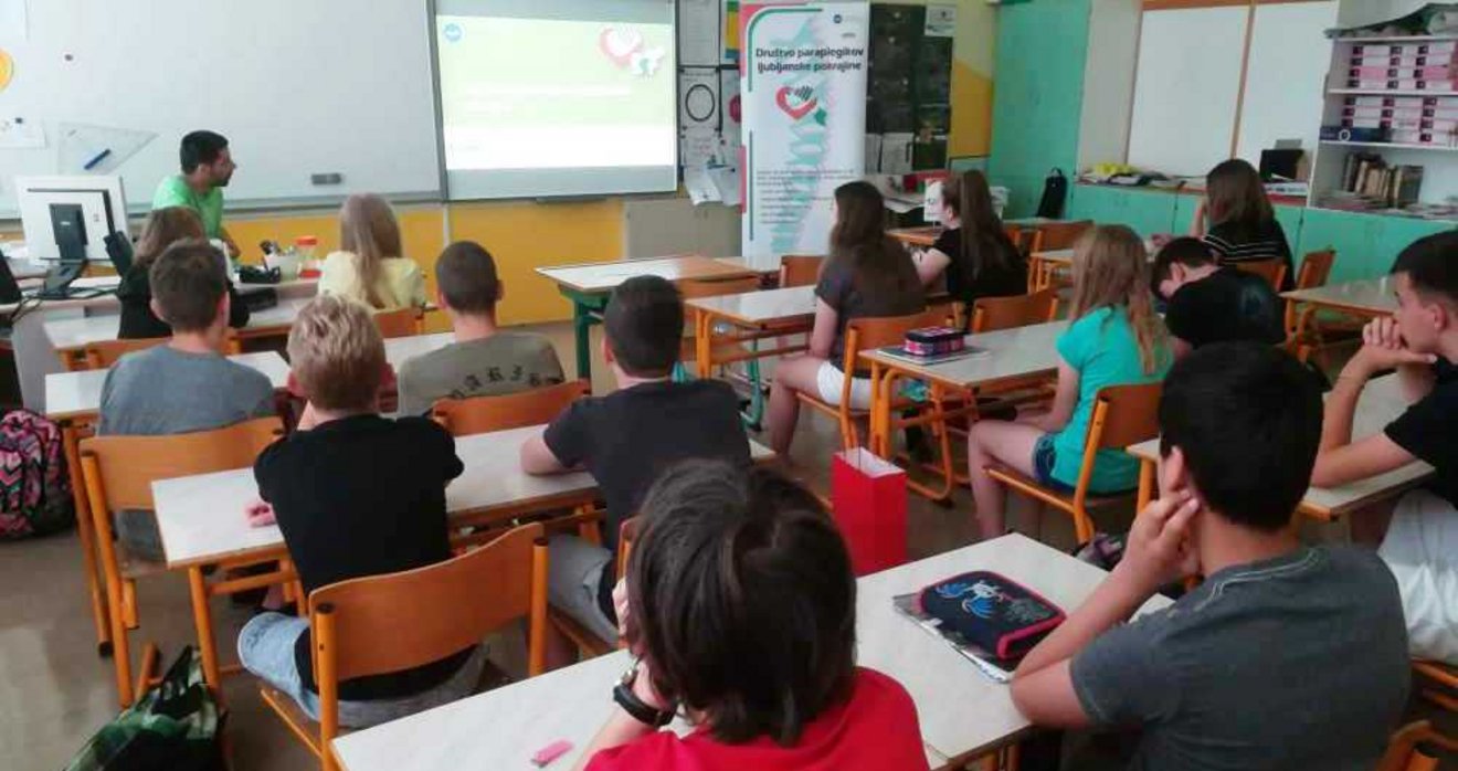 Z učiteljico etike Majo Grbec- Švajncer smo se dogovorili, da se tokrat predstavimo osmim razredom. Tako sta Nino in Rok v treh predavanjih učencem predstavila kaj so poškodbe hrbtenjače, kakšni so najpogostejši vzroki za njihov nastanek ter hude posledice, ki jih pusti tovrstna poškodba. Predstavila sta tudi svoji zgodbi. Rok se je poškodoval v prometni nesreči, Nino pa pri skoku na glavo v vodo. Prav prometne nesreče so najbolj pogost vzrok nastanka paraplegije in tetraplegije, saj predstavljajo kar 33 odstotkov vseh poškodb. Pri skokih v vodo se vedno zlomi hrbtenica v vratnem predelu, kar pripelje do tetraplegije, ki je zelo huda poškodba. Učence sta tako opozorila na pasti, ki prežijo na njih v prometu in skokih na glavo v vodo. Ker pa se življenje po poškodbi nadaljuje, sta jim predstavila tudi programe društva, ter s projekcijo fotografij pokazala s čim vse se paraplegiki in tetraplegiki ukvarjamo. Na koncu sta jim razdelila še brošuro društva, ter jim zaželela lepe in brezskrbne počitnice.Z učiteljico pa sta se dogovorila že za prihodno sodelovanje.