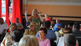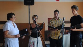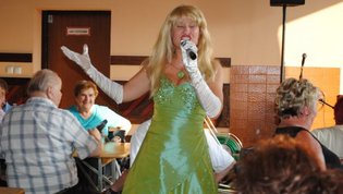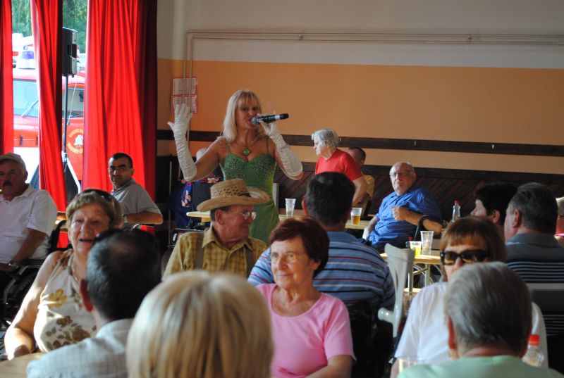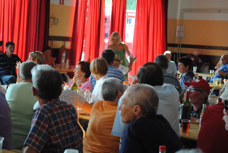 V nadaljevanju srečanja so naši organizatorji pod vodstvom Mojce Burger, poskrbeli za resnično lep in pester razvedrilno zabavni program. Najprej je nekaj lepih slovenskih narodnih pesmi zapel družinski kvartet Plevnik, zatem pa je vse navdušila komaj petnajstletna in že odlična violinistka Petra Herič. Navdušila pa je tudi odlična »imitatorka« v vlogi Helene Blagne, Zlate in popularne čistilke Fate. Res dober program, ki smo ga vsi z navdušenjem spremljali in pozdravili.