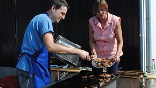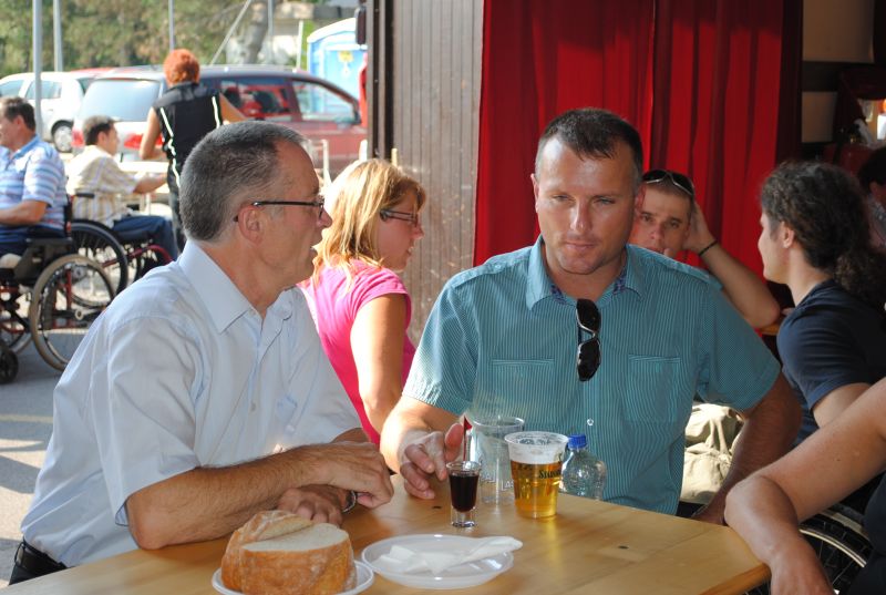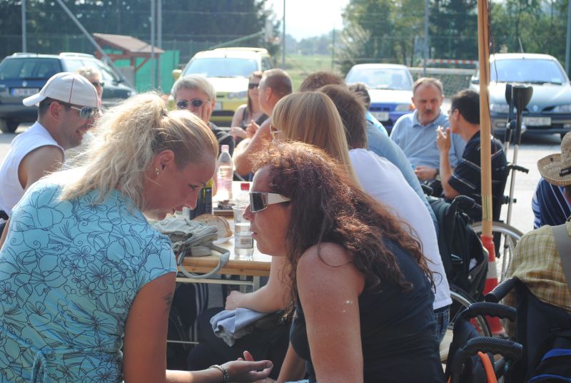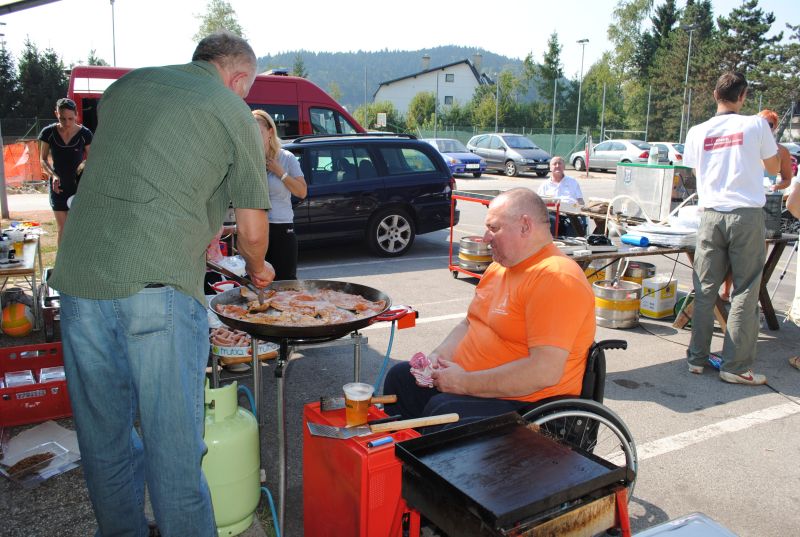 Specialitete na žaru sta pripravljala »mojster« Slavko Kranjc in osebni asistent Saša Stojič. »Stregele« sta jima in nato tudi udeležencem postregle naše osebne asistentke. Torej vse v lastni režiji pod geslom »Odlično in poceni.« Vsem udeležencem srečanja je prijetno druženje zaželel predsednik društva Gregor Gračner in pripomnil, da je naše člane z desetimi vožnjami na srečanje pripeljalo kar sedem kombijev.