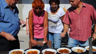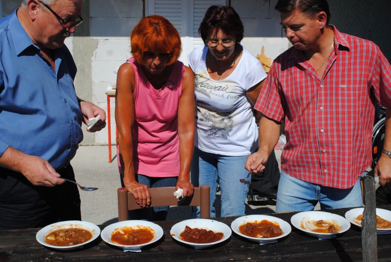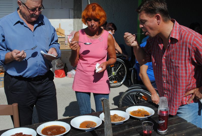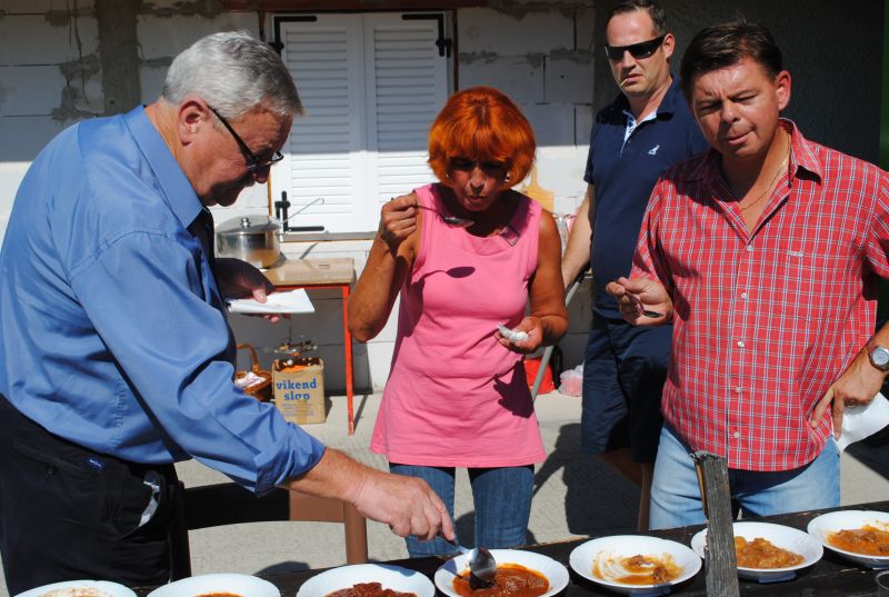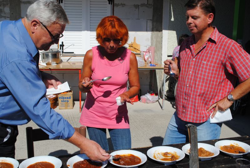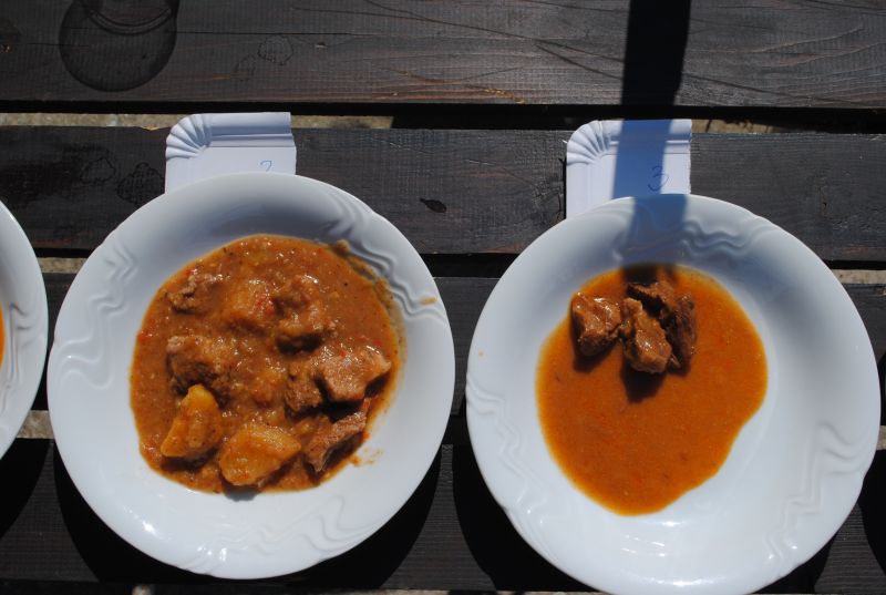 Kmalu po deseti uri se je zaslišalo sekljanje čebule, za tem pa v kotličkih že brbotanje in prijetne vonjave. Kaj vse so vanje nasuli kuharji, je poleg standardnih sestavin, bila skrbno varovana skrivnost, ampak vseeno smo »zavohali«: čili, tabasco, svežo rdečo papriko, pristen teran letnik 2007 in celo tartufe. Zato sta imela župan Svete Trojice Darko Fras in župan Hoče Slivnica Jože Merkuš kar težko delo, da sta izbrala najboljše ekipe. »Če bi se športno izrazila je bil to »foto finiš,« sta pripomnila. Tako izenačene so namreč bile ekipe. Po temeljitem poskušanju sta le določila, da je najboljši golaž skuhala ekipa DP jugozahodne Štajerske, druga je bila druga ekipa DP ljubljanske pokrajine - Bernašek-Globokar,, tretja pa ekipa DP Dolenjske, Bele krajine in Posavja. Druge ekipe so vse osvojile četrto mesto.