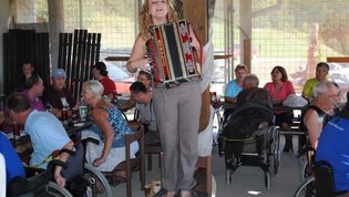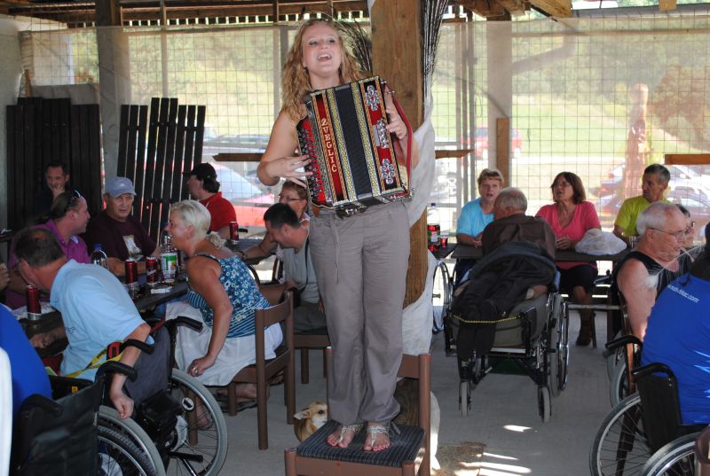 Lepo in prijetno srečanje je s poskočnimi vižami na harmoniki popestrila Špela Pokeržnik.