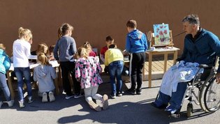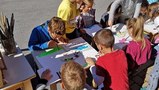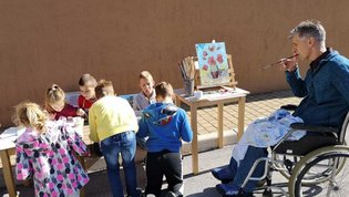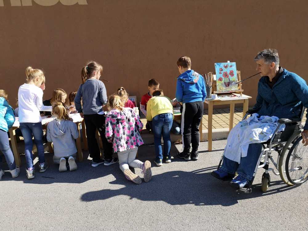 Z velikim občudovanjem so na tretji delavnici opazovali našega slikarja Željka Vertlja, ki zaradi težke gibalne oviranosti slika z usti. Tudi sami so probali in kaj hitro uvideli, da je za ta način slikanja treba veliko volje, vaje in tudi nekaj talenta.