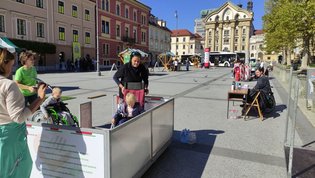 Društveno dejavnost ter delo in življenje naših članov so ob stojnici na Kongresnem trgu predstavljali: predsednica Mirjam Kanalec, Eva Pahovnik, Jasna Vugrinec, Andor Palkovič, Rok Bratovž in Slavko Krajnc.
