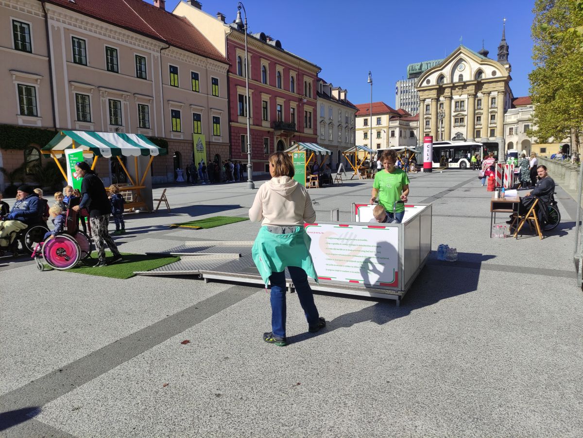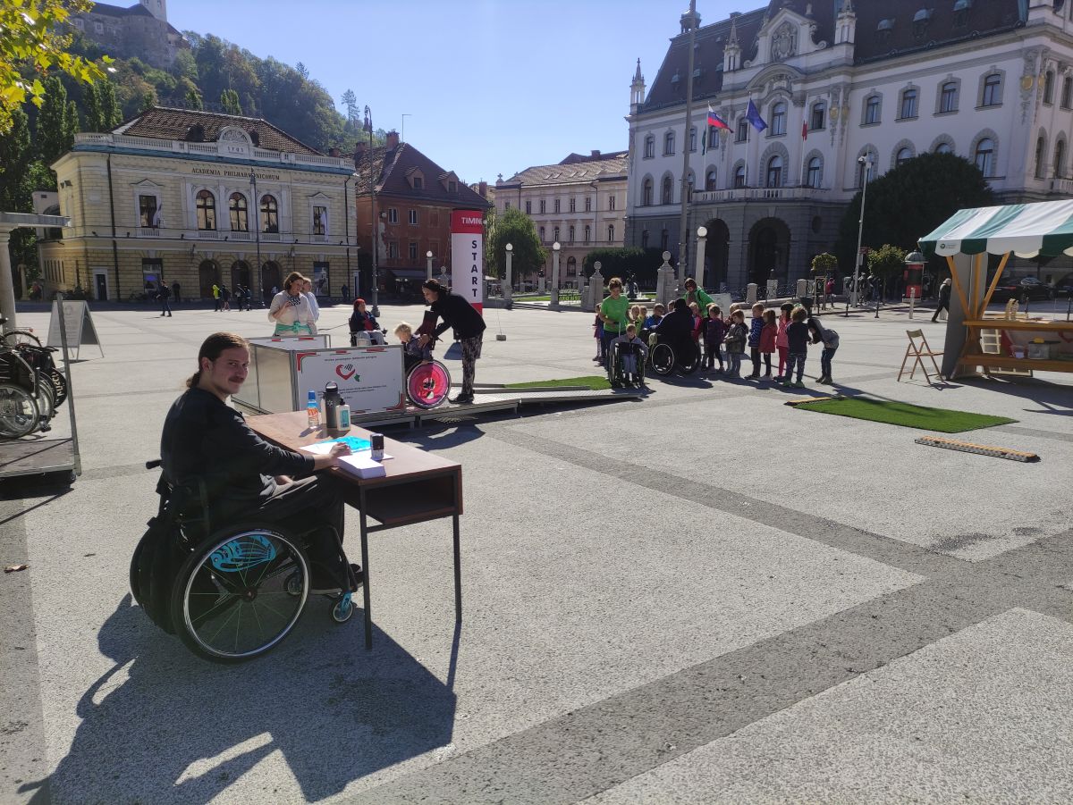 Na Kongresnem trgu je 19. septembra 2022 Svet za odpravljanje arhitekturnih in komunikacijskih ovir pri MOL, ki ga vodi član našega društva Sašo Rink, skupaj z Zvezo društev slepih in slabovidnih Slovenije, Zvezo društev gluhih in naglušnih Slovenije in našim društvom, pripravil poligon s tremi sklopi ovir - preprekami s katerimi se srečujejo gibalno ovirani, z ovirami s katerimi se srečujejo slepi in slabovidni ter s tistimi, s katerimi se srečujejo gluhi in naglušni. Mimoidoči pa so si lahko ogledali tudi dostopnost avtobusa LPP, ki ga z brezplačno urbano uporabljajo potniki na vozičkih in drugi invalidi.
