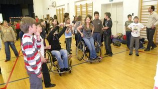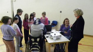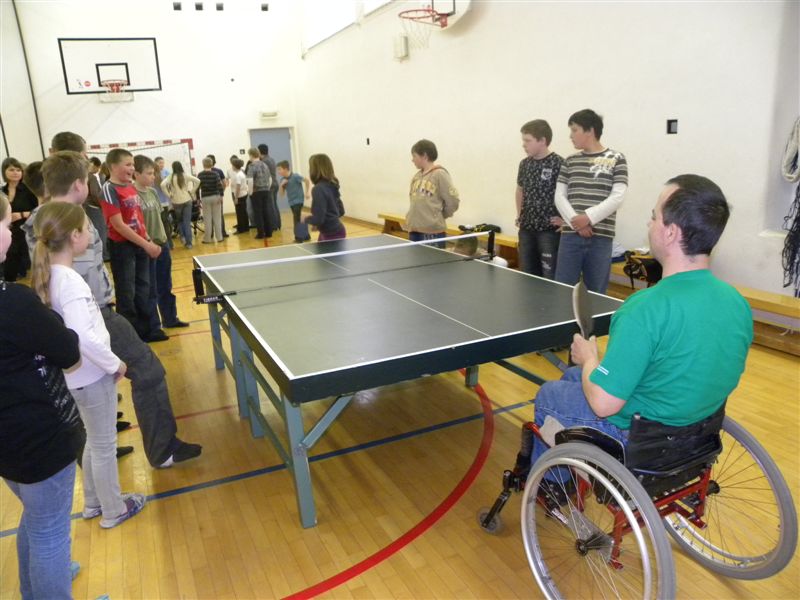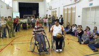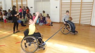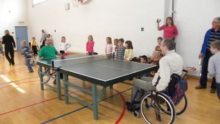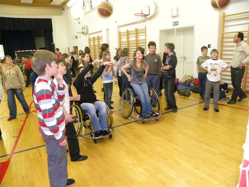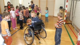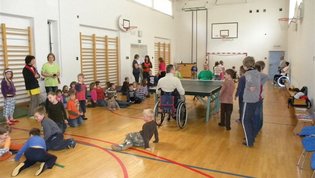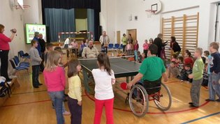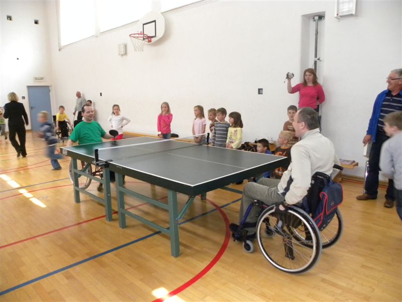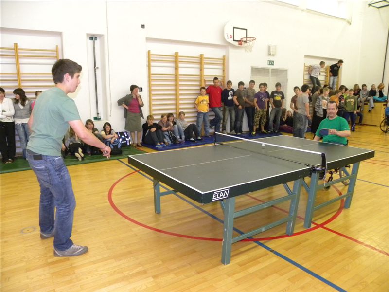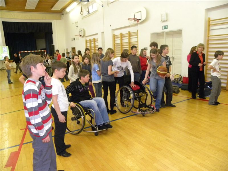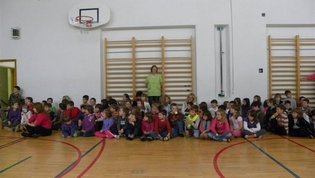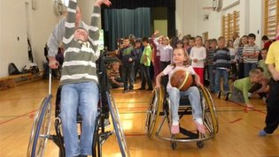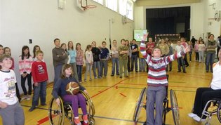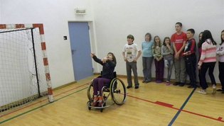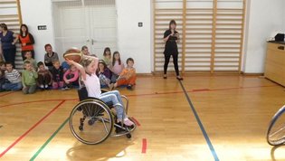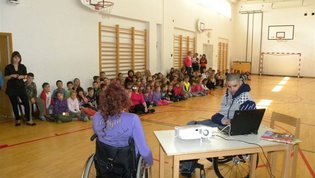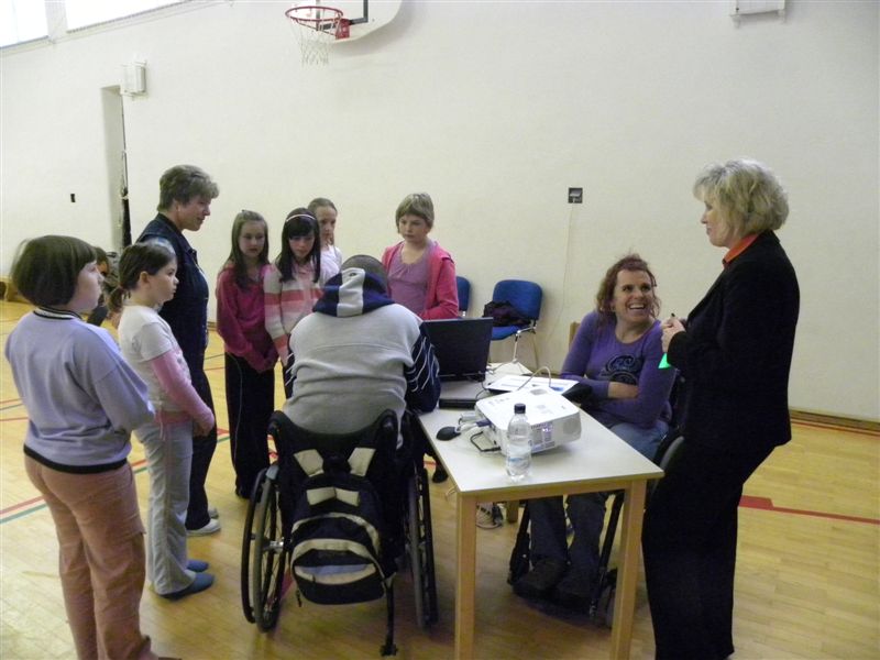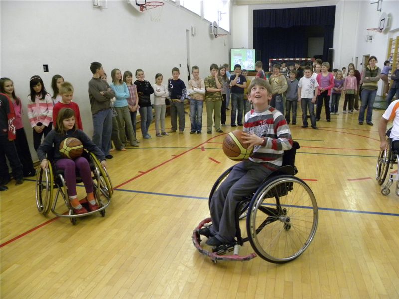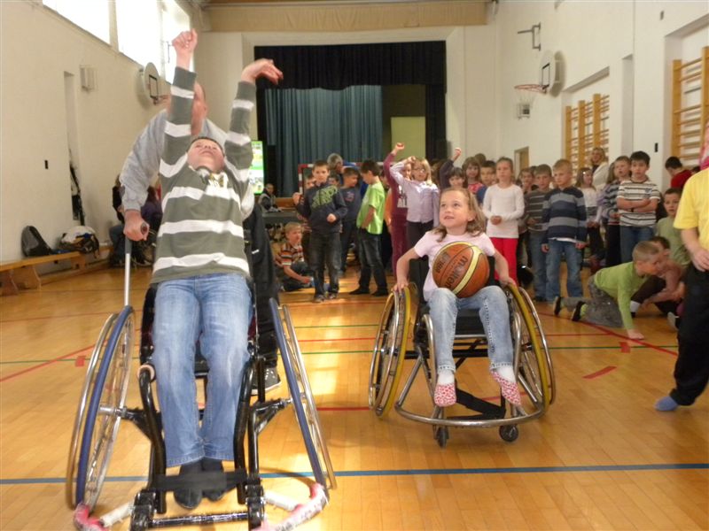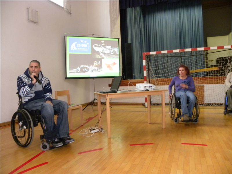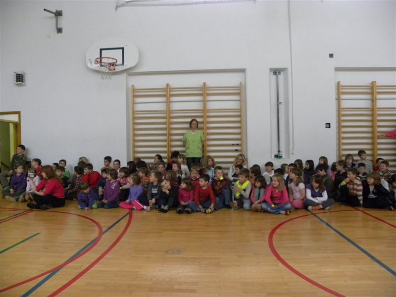 Tokratna predstavitev je potekala v treh delih. Najprej smo se predstavili malčkom v vrtcu, nato pa vsem učencem od prvega do devetega razreda. Pred vsako našo predstavitvijo nas je lepo pozdravila in napovedala ravnateljica prof. Majda Kovačič Cimperman, mi pa smo nato predstavili delovanje društva, življenje ljudi s poškodbo hrbtenjače in vzroke, ki pripeljejo do teh poškodb. Prav tem vzrokom smo dali največ poudarka, saj smo želeli preventivno opozoriti na številne nesreče zaradi katerih človek lahko pristane na invalidskem vozičku. Predstavitev smo slikovno podprli in prilagodili glede na starost slušateljev. Celotno dogajanje je potekalo v telovadnici šole, kjer so se predstavili tudi naši košarkarji in igralci v namiznem tenisu. Posebna predstavitev pa je bila tudi v avli šole, kjer so svoje ročne spretnosti pokazale naše članice in slikar Željko Vertelj, ki svoja umetniška dela ustvarja s čopičem v ustih.