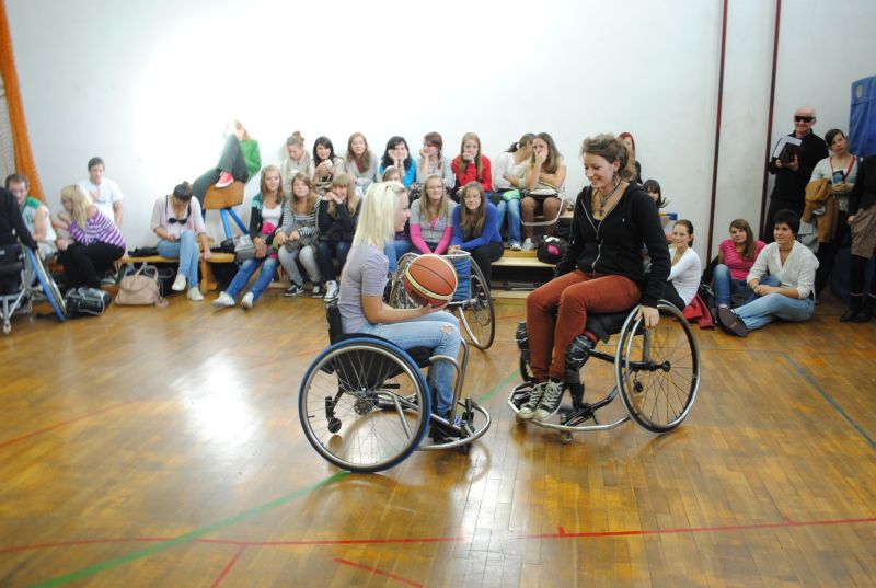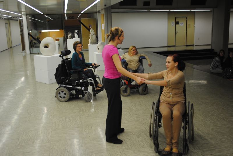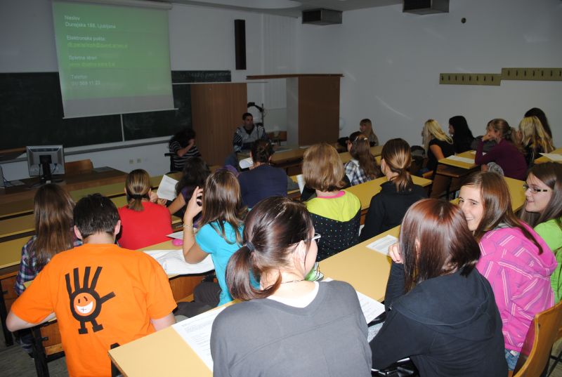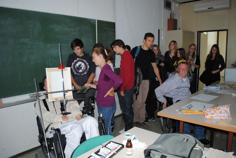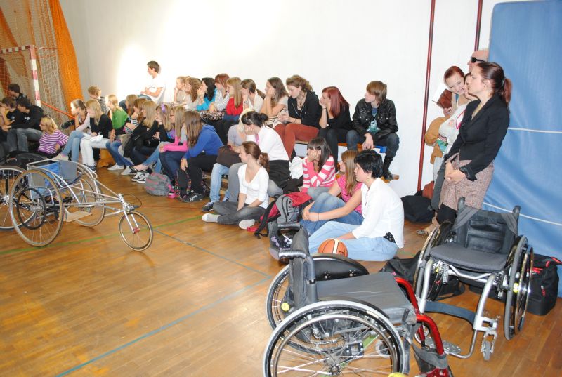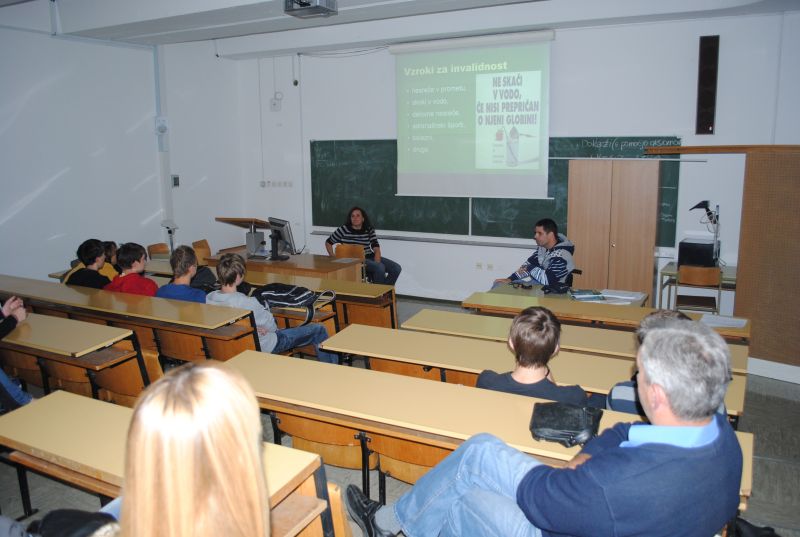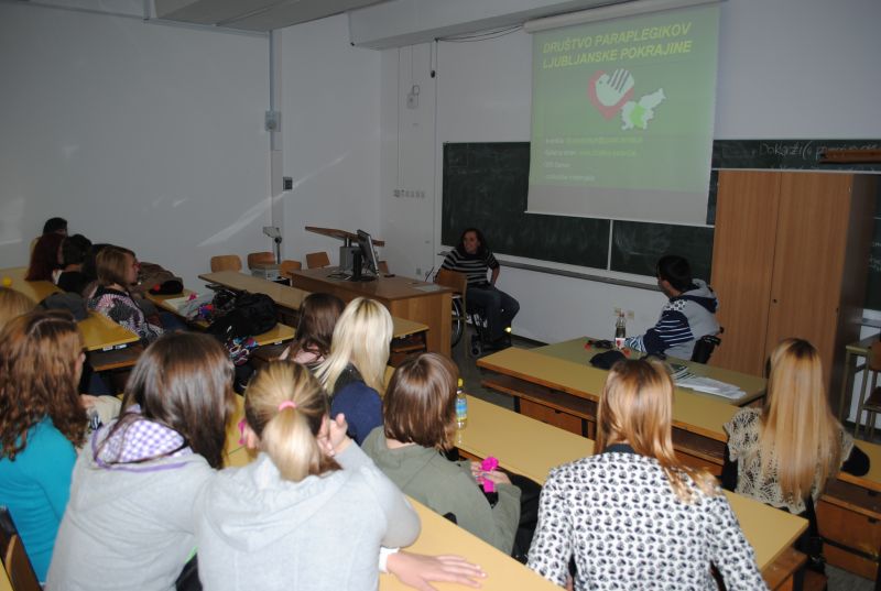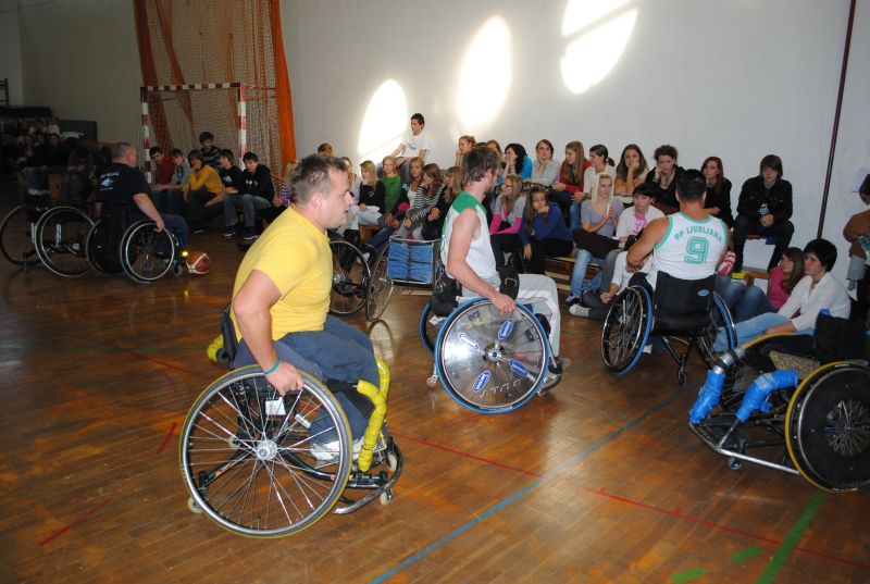 Naši predstavitvi je na šestih delavnicah (predstavitev društva in vzrokov naših nesreč ali obolenj hrbtenjače, slikanja z usti, ročnih spretnosti, plesa na vozičkih, športa in vožnje z invalidskimi vozički), prisluhnilo več kot 200 dijakov iz sedmih razredov drugega letnika. To so gimnazijci, bodoči vzgojitelji ter bodoči igralci in plesalci.