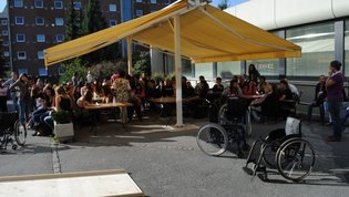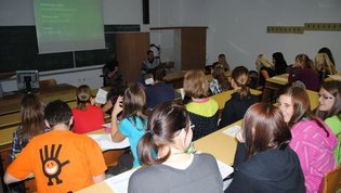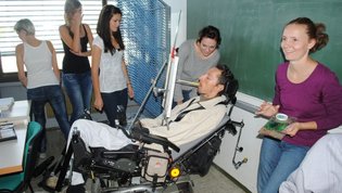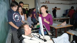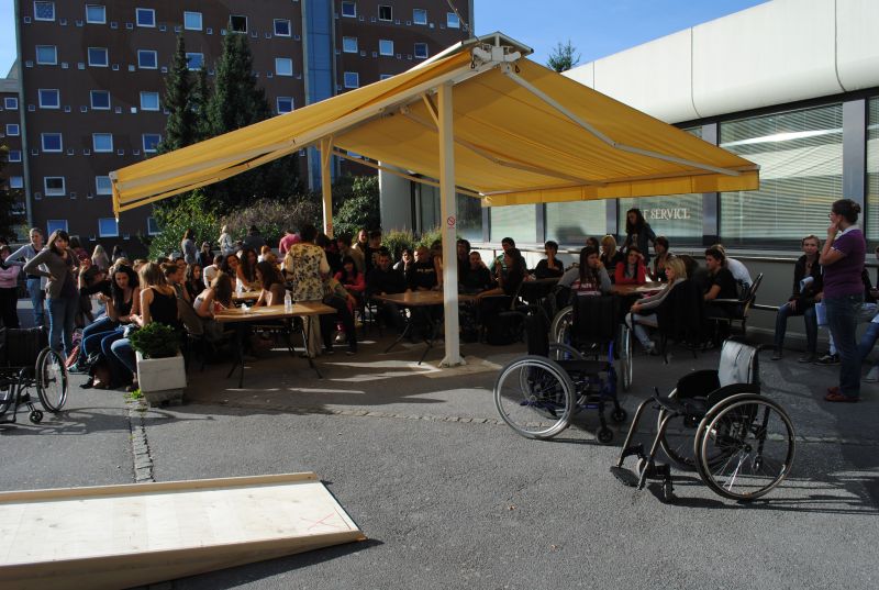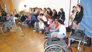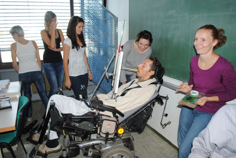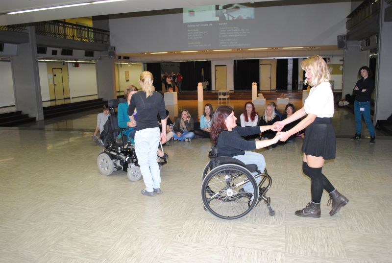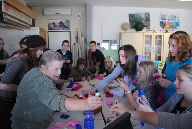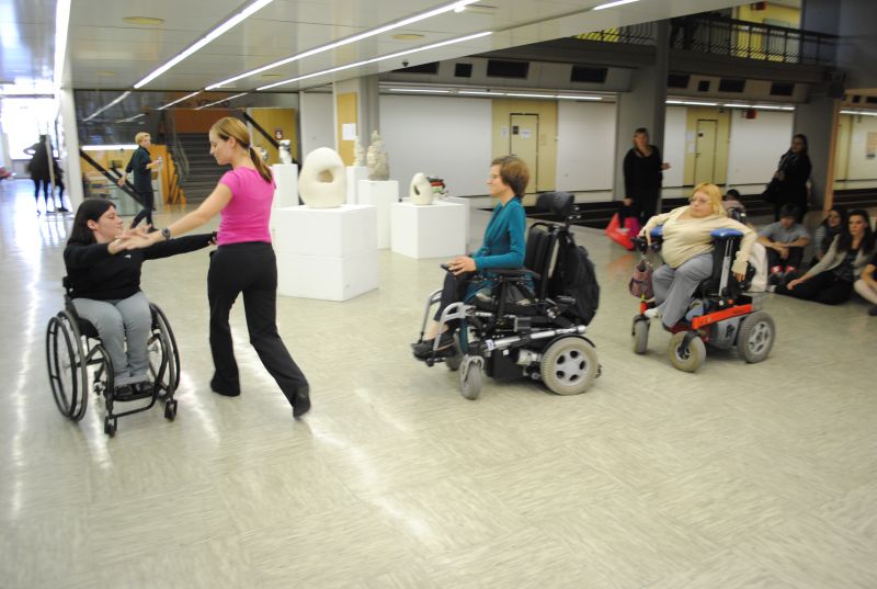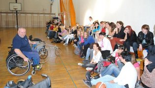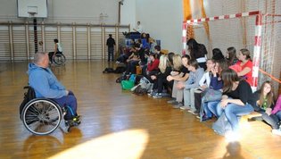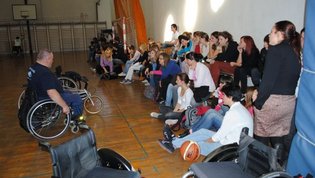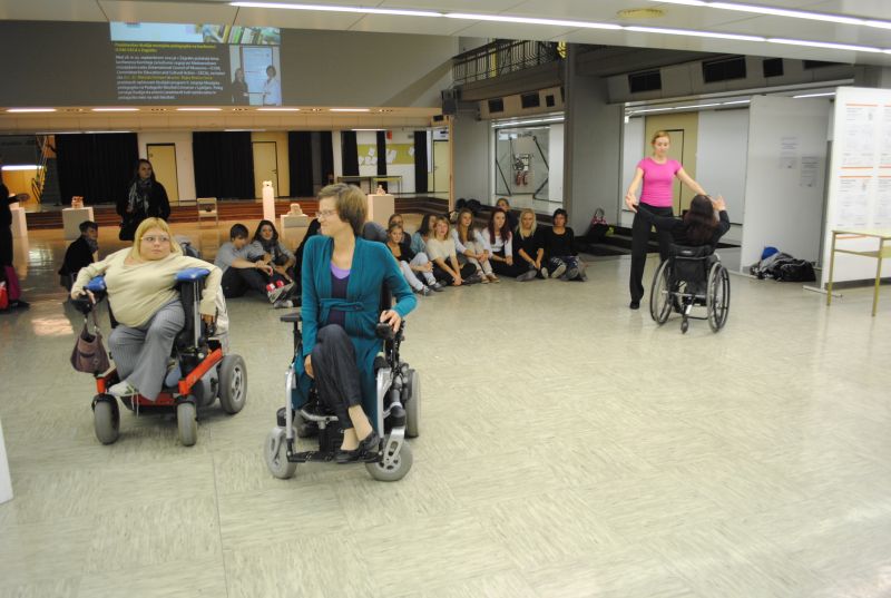 Naši predstavitvi je na šestih delavnicah (predstavitev društva in vzrokov naših nesreč ali obolenj hrbtenjače, slikanja z usti, ročnih spretnosti, plesa na vozičkih, športa in vožnje z invalidskimi vozički), prisluhnilo več kot 200 dijakov iz sedmih razredov drugega letnika. To so gimnazijci, bodoči vzgojitelji ter bodoči igralci in plesalci.