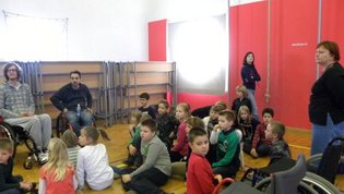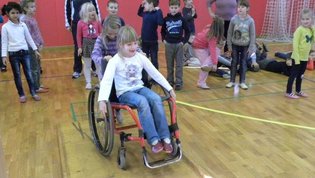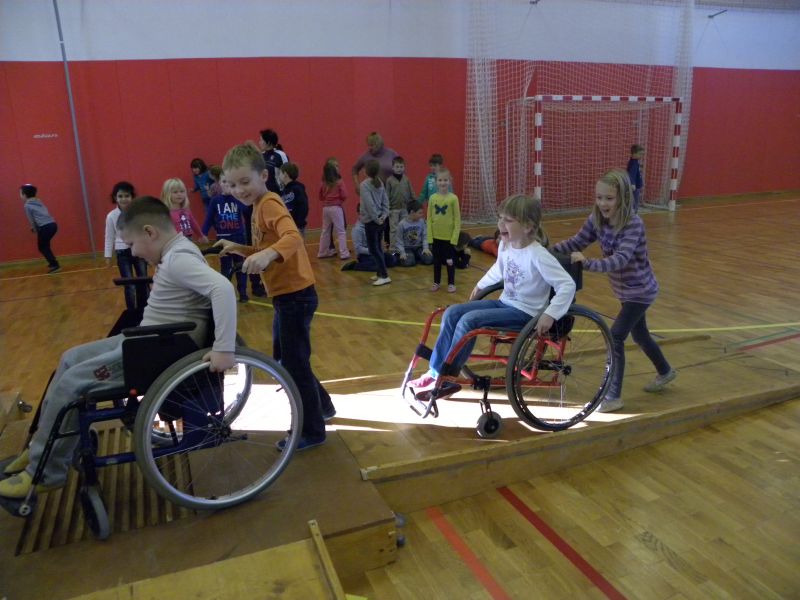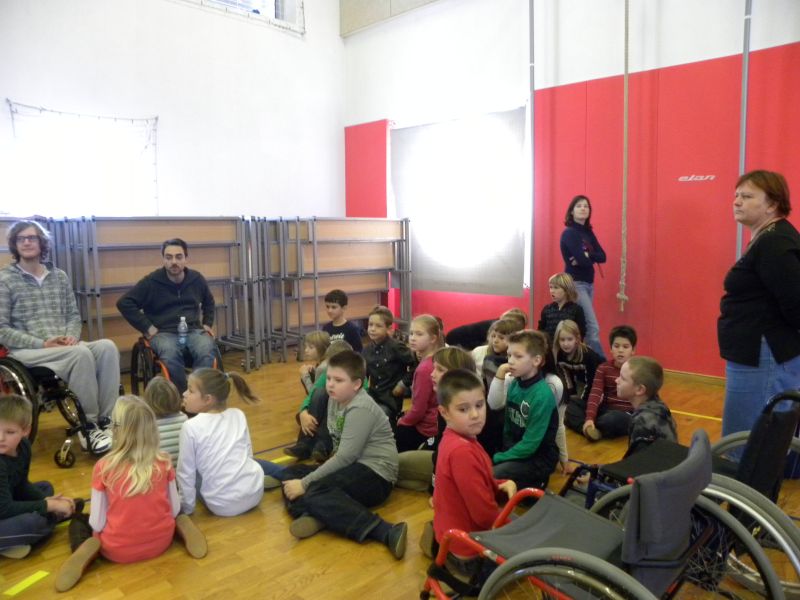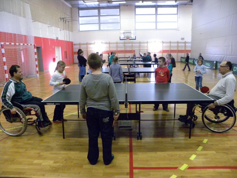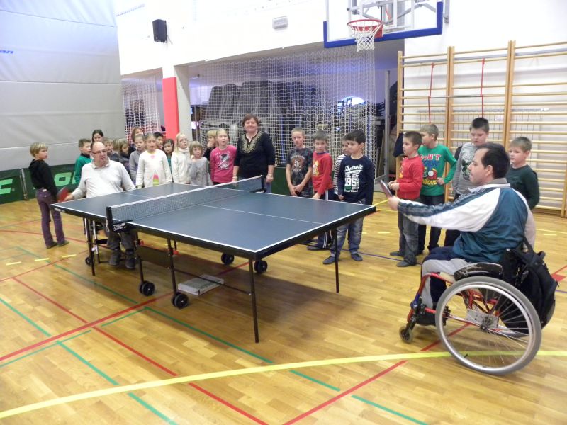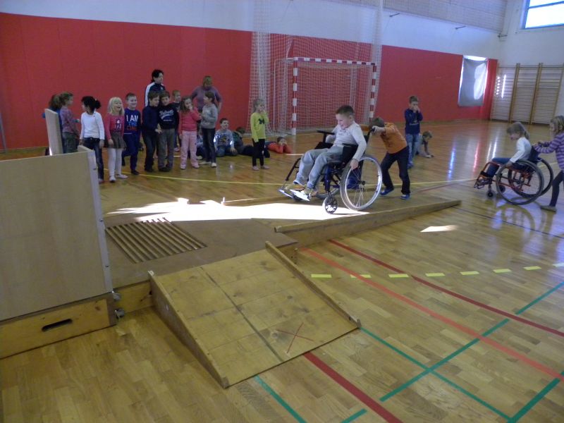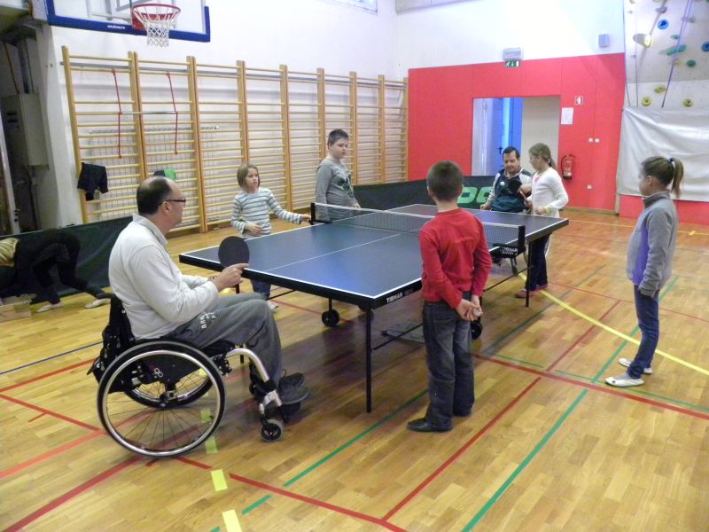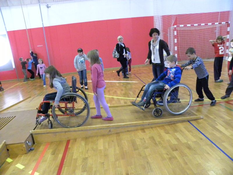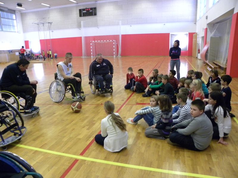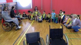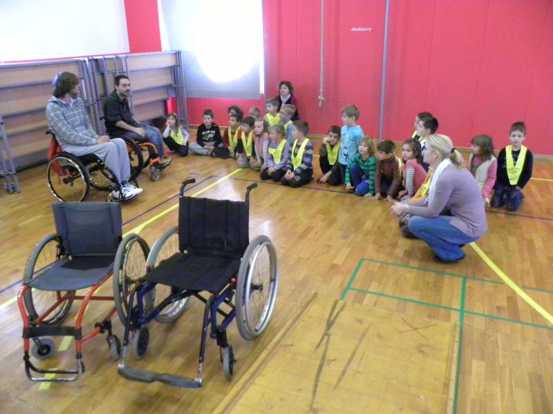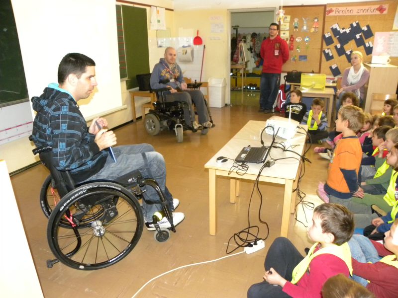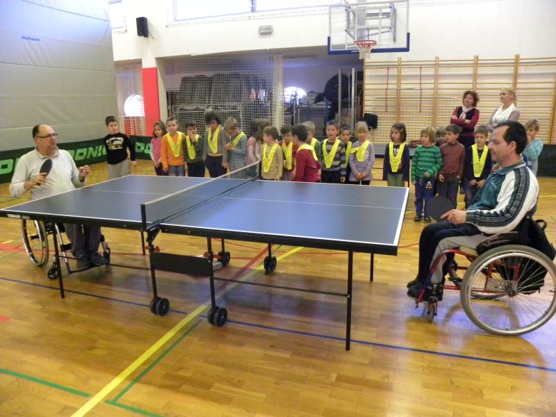 Prisluhnilo nam je kar 167 učencev in 15 njihovih učiteljev. Predstavili smo jim šest delavnic: košarka in namizni tenis, poizkusili so se lahko v vožnji z vozički na našem poligonu, v slikanju z usti, izdelovanju papirnatih izdelkov