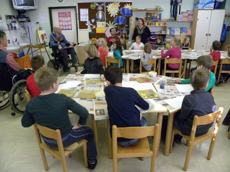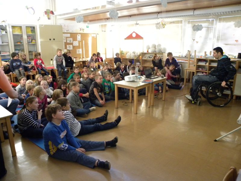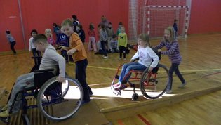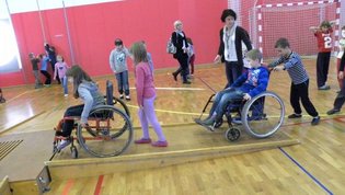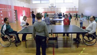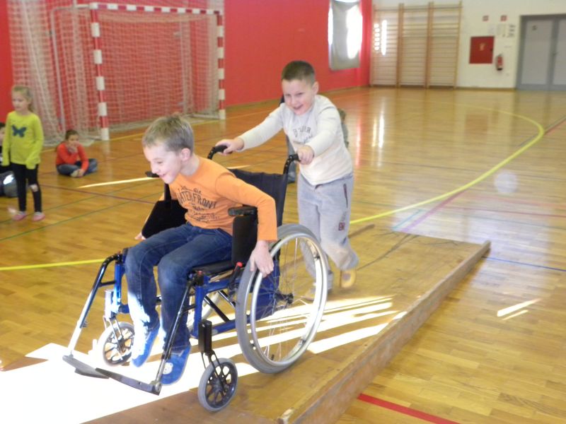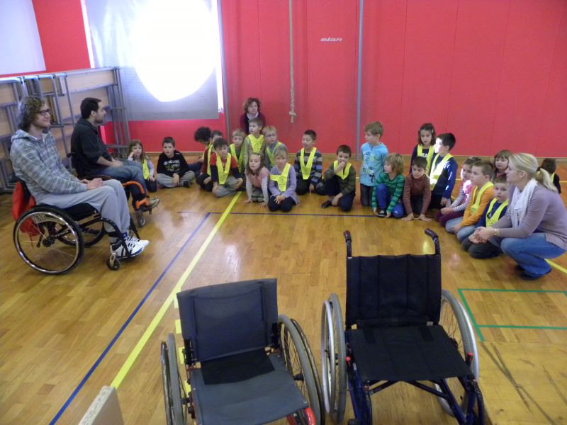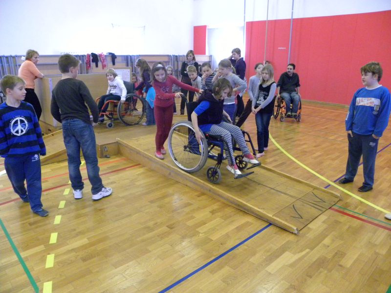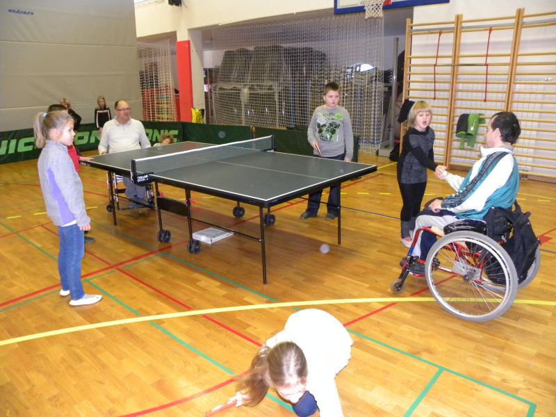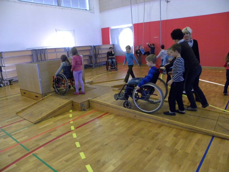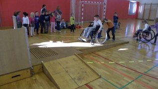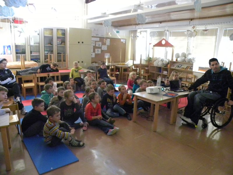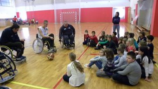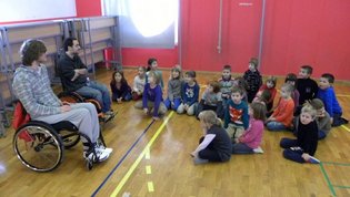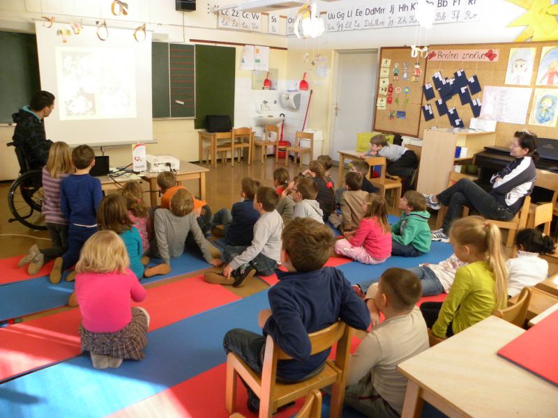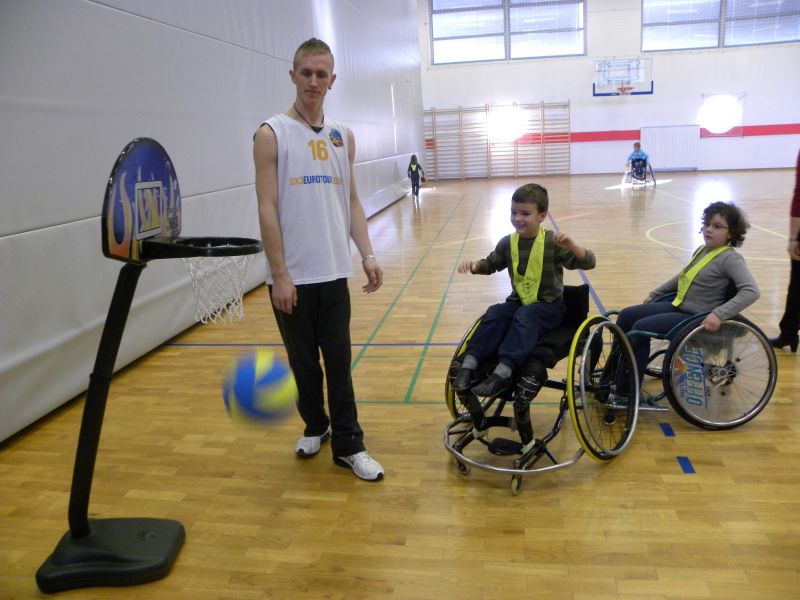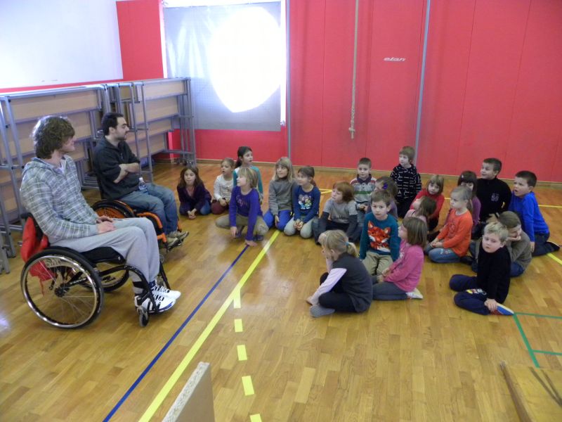 Prisluhnilo nam je kar 167 učencev in 15 njihovih učiteljev. Predstavili smo jim šest delavnic: košarka in namizni tenis, poizkusili so se lahko v vožnji z vozički na našem poligonu, v slikanju z usti, izdelovanju papirnatih izdelkov