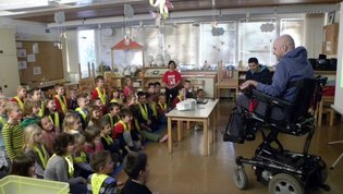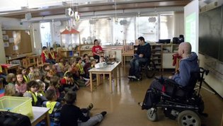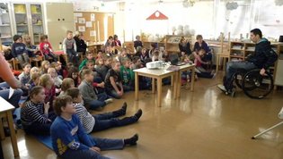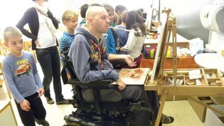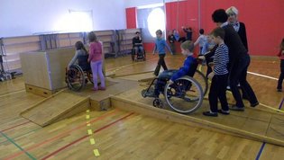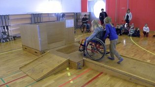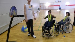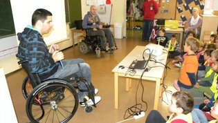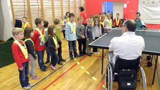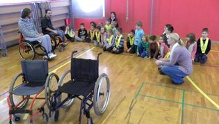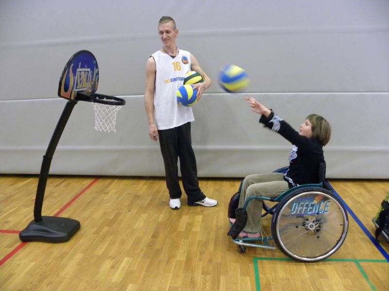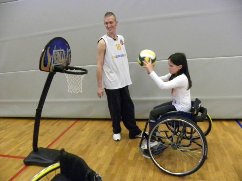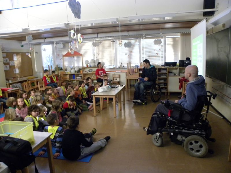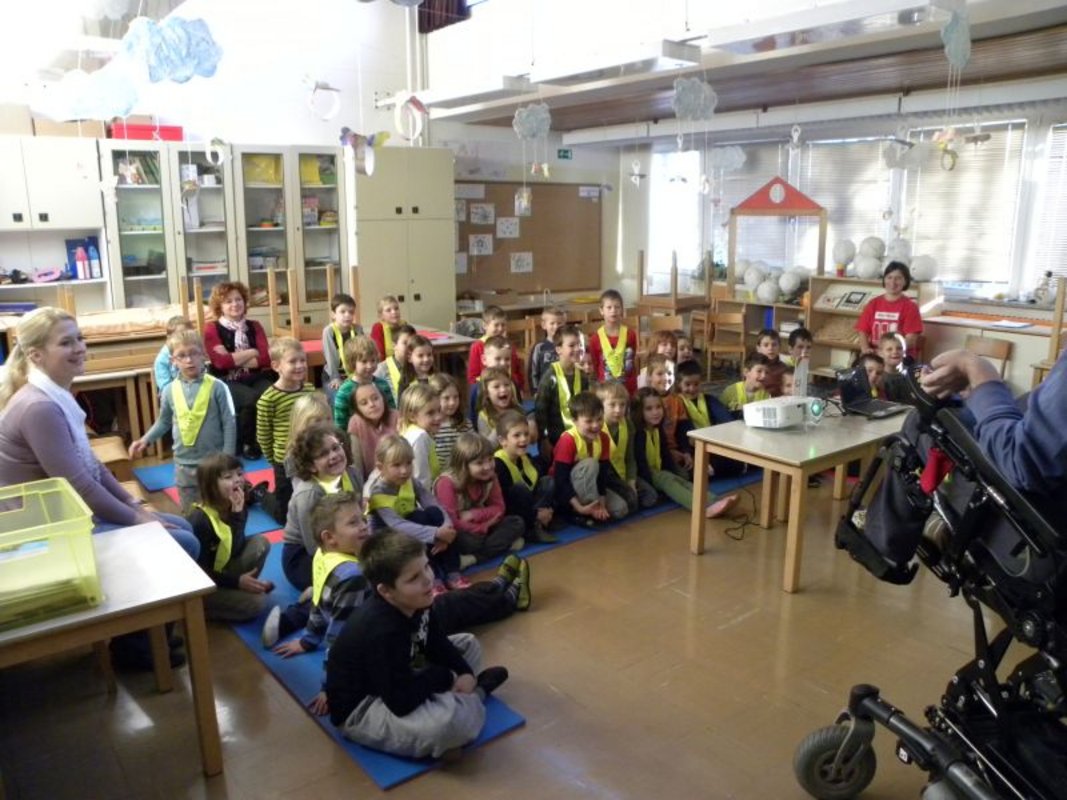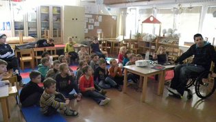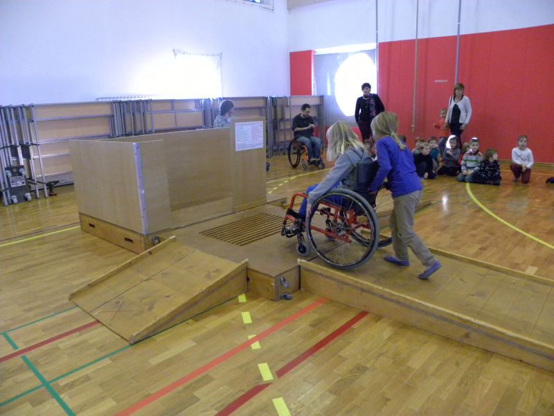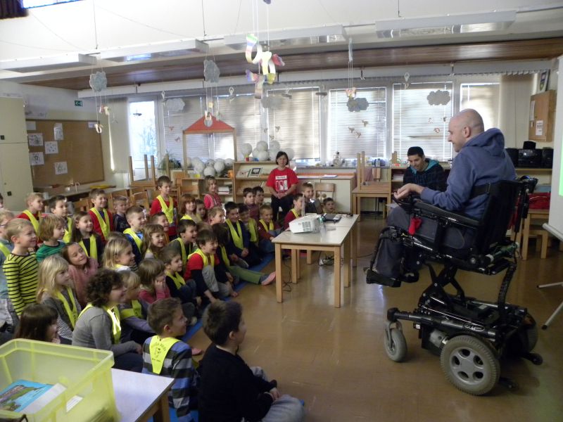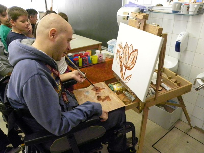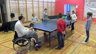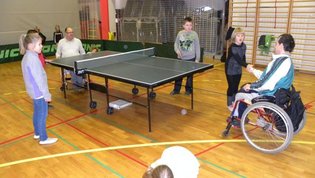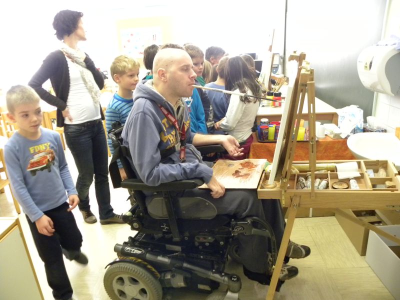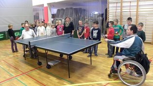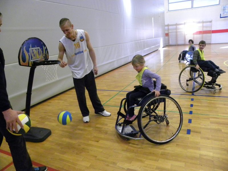 Prisluhnilo nam je kar 167 učencev in 15 njihovih učiteljev. Predstavili smo jim šest delavnic: košarka in namizni tenis, poizkusili so se lahko v vožnji z vozički na našem poligonu, v slikanju z usti, izdelovanju papirnatih izdelkov