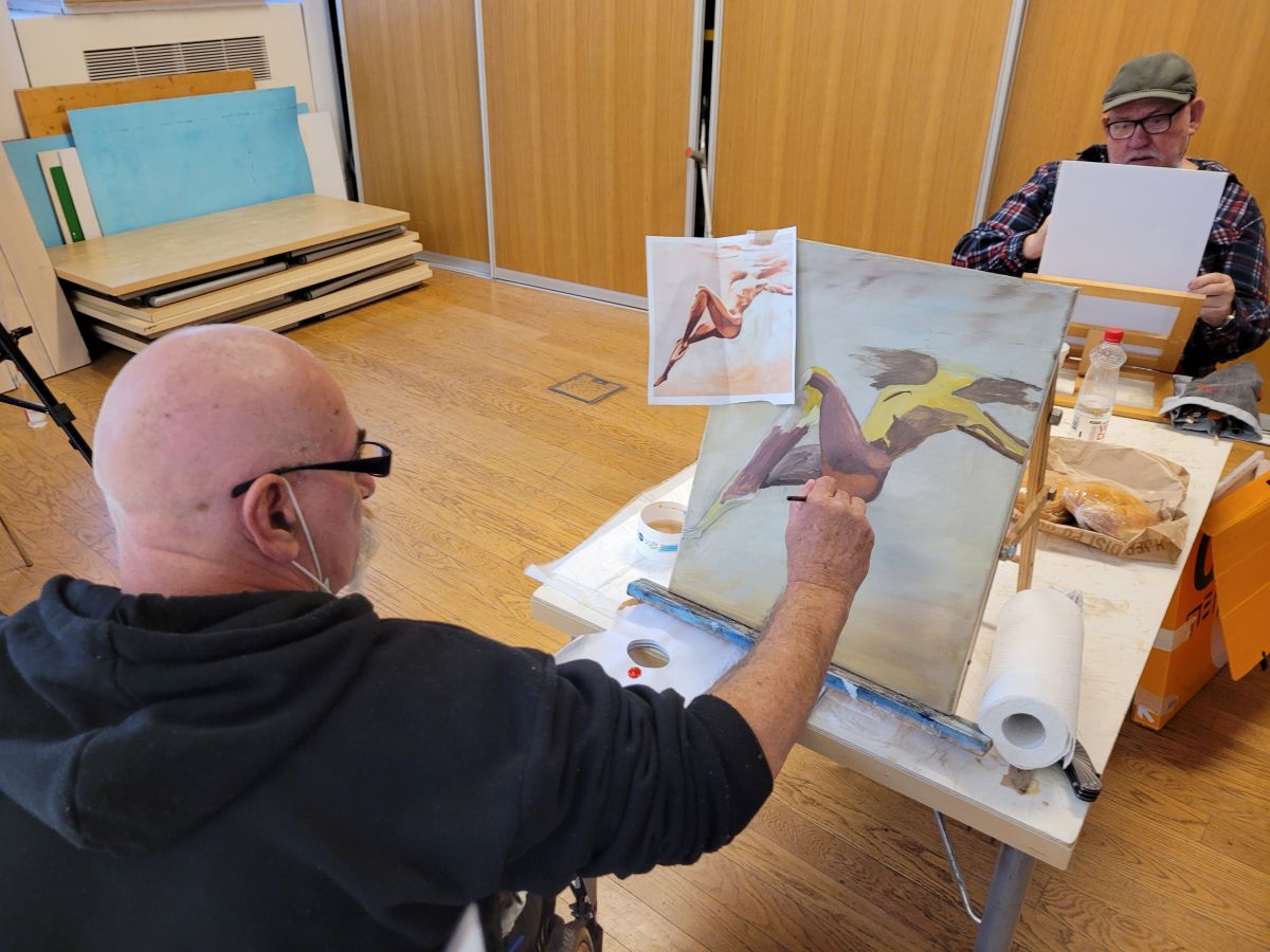 V prostorih Mestnega muzeja v Ljubljani so ob strokovnem vodenju slikarja in mentorja Rajka Čauševiča v različnih tehnikah izpopolnjevali: naš slikar Damjan Rogelj, slikar, kipar in rezbar Miran Jernejšek iz DP Maribor, slikar Ivan Regoršek iz DP Maribor, slikarka Ljudmila Turk iz Ljubljane in vodja kulturne dejavnosti pri Zvezi paraplegikov Slovenije slikar Metod Zakotnik. Žal, se iz varnostnih razlogov delavnice ni mogel udeležiti priznani slikar našega društva Željko Vertelj, ki je član elitnega Mednarodnega združenja slikarjev, ki slikajo z usti ali nogami. Vsi omenjeni pa so člani Likovne sekcije pri Zvezi.Delavnico sta si ogledali tudi predsednica društva Mirjam Kanalec in socialna delavka Nina Černe.