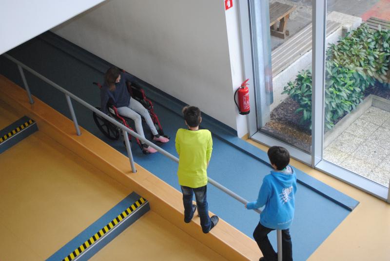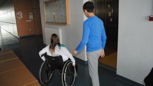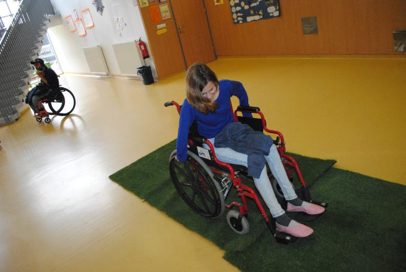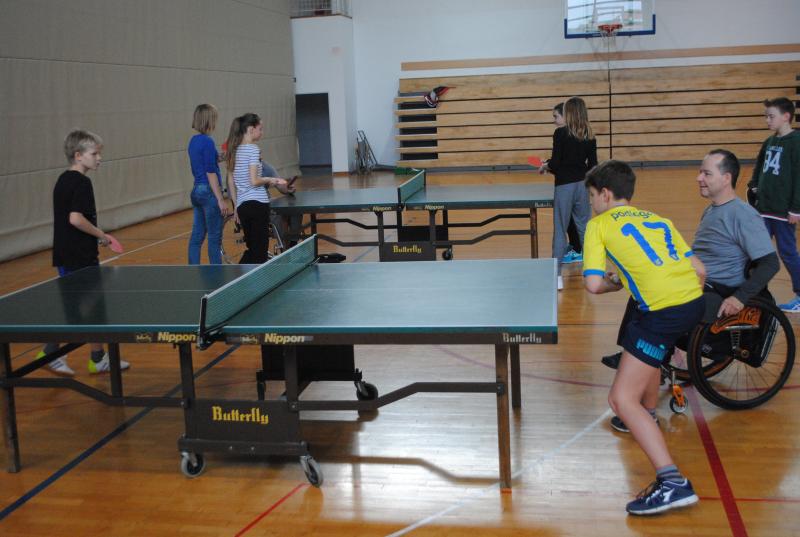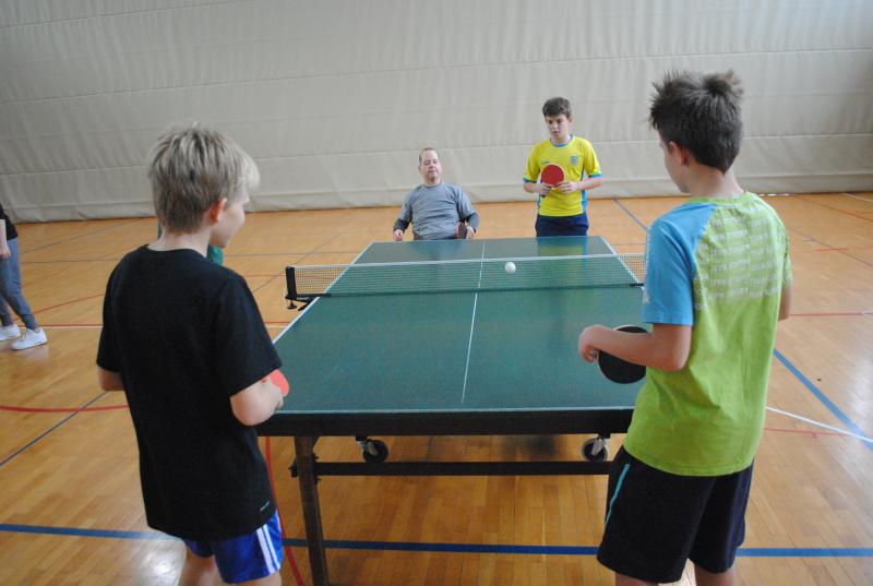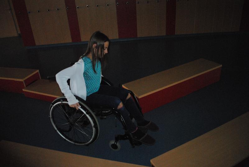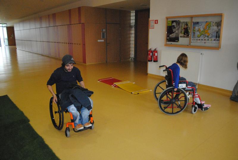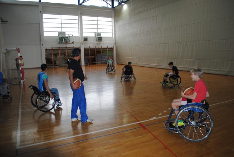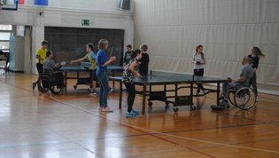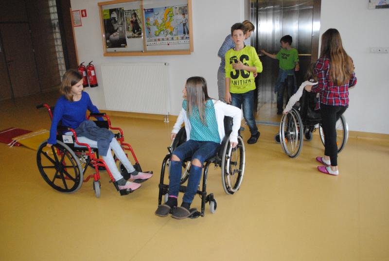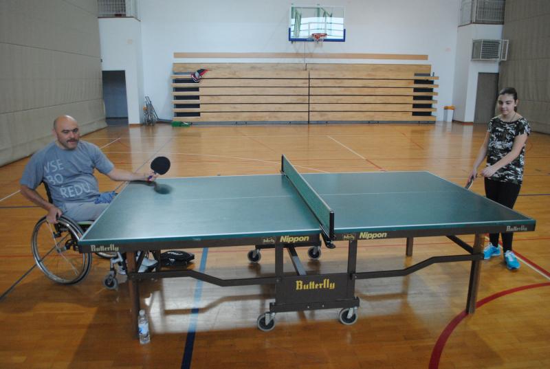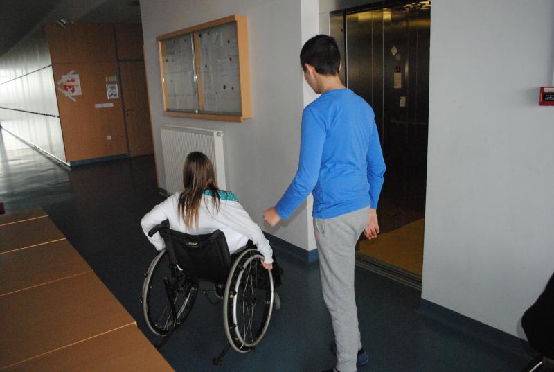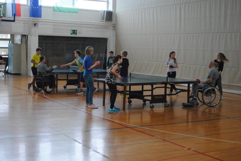 Na drugi delavnici so praktično spoznali različne arhitekturne ovire s katerimi se paraplegiki in tetraplegiki še vedno vsakodnevno srečujemo. Z vozički so se vozili po klančini, z dvigalom in med ovirami. Z našimi športniki so se pomerili v košarki in namiznem tenisu. Spoznali so, da je z vozičkom težko voditi žogo in zadeti koš, težko pa je bilo osvojiti tudi točko v namiznem tenisu.