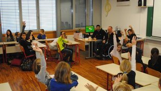 Na skupni predstavitvi smo s projekcijo fotografij učence opozorili na vse vzroke, ki so botrovali naši invalidnosti, še posebej pa na prometne nesreče, ki predstavljajo kar tretjino poškodb hrbtenjače. Ob predstavitvi so učenci postavili številna vprašanja in seveda dobili odgovore iz prve roke.