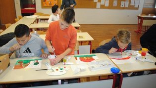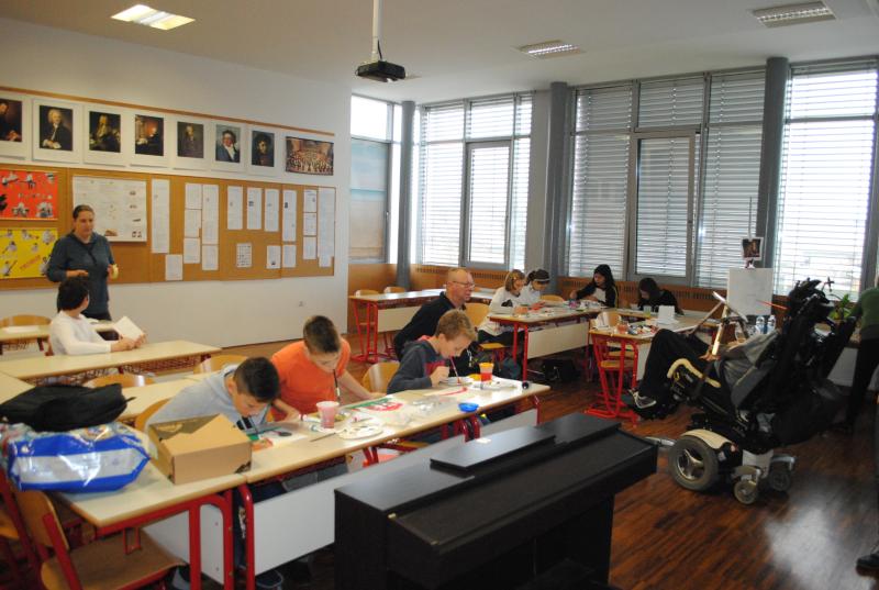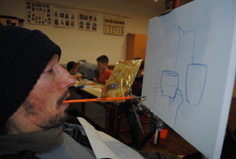 V nadaljevanju so na prvi delavnici spoznali našega člana Silva Mehleta, ki svoja dela ustvarja s čopičem v ustih in je pridruženi član Mednarodnega združenja slikarjev, ki slikajo z usti ali nogami. S tem načinom slikanja so se tudi sami poskusili in za začetek so nastale kar dobre slike.