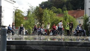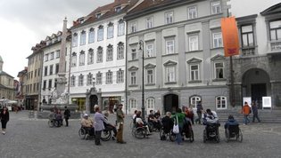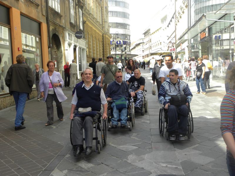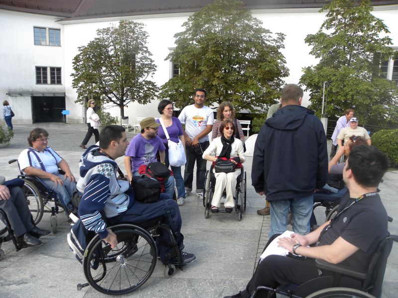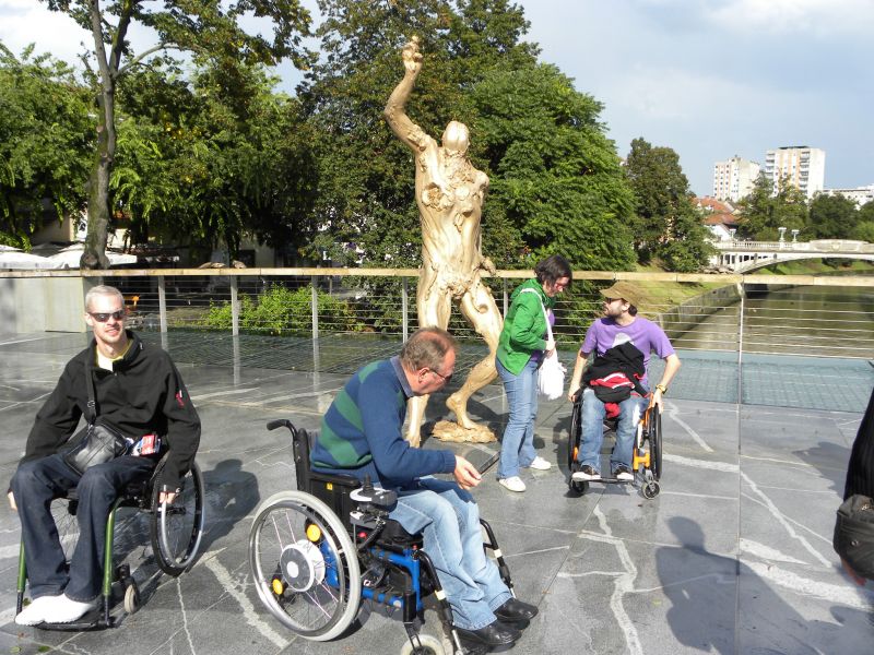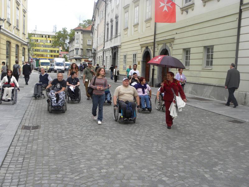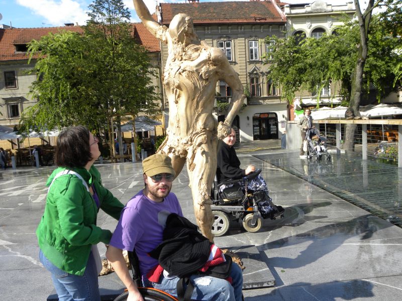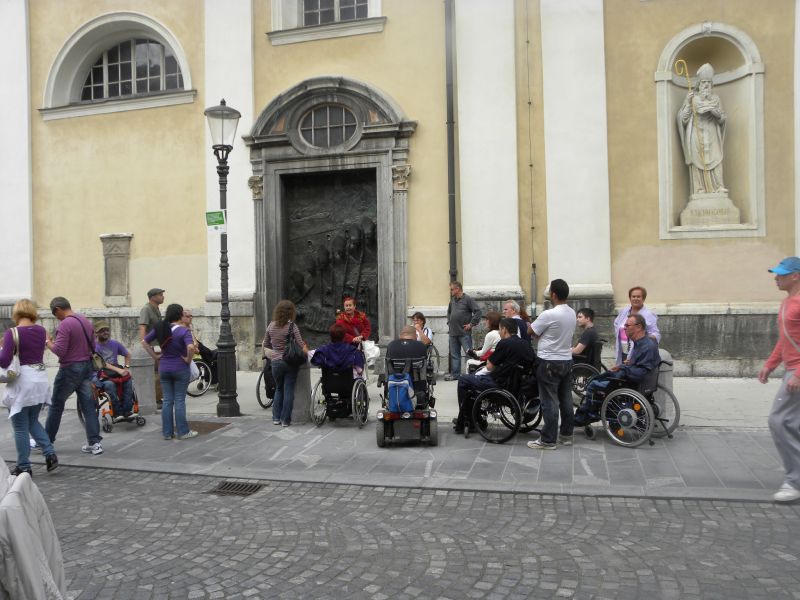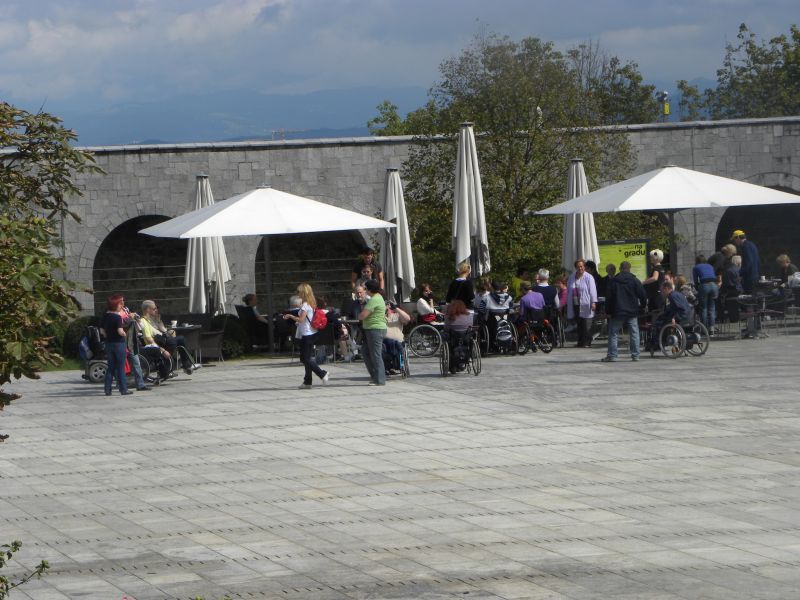Po prihodu iz Semiča smo jih sprejeli na društvu, nato pa se še z nekaterimi našimi člani z avtobusi mestnega ljubljanskega potniškega prometa odpeljali do središča mesta. Po živahni Čopovi ulici smo se podali do spomenika našega največjega poeta Franceta Prešerna, jim predstavili Plečnikovo Tromostovje, nato pa se z vzpenjačo povzpeli na ljubljanski grad. Prostovoljci so se seveda povzpeli še na razgledni stolp, od koder se kot na dlani razpre pogled na Ljubljano in okolico.