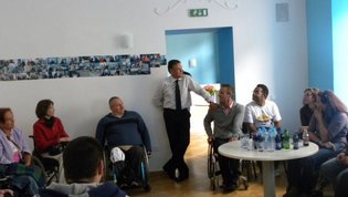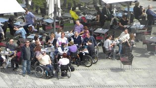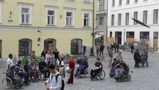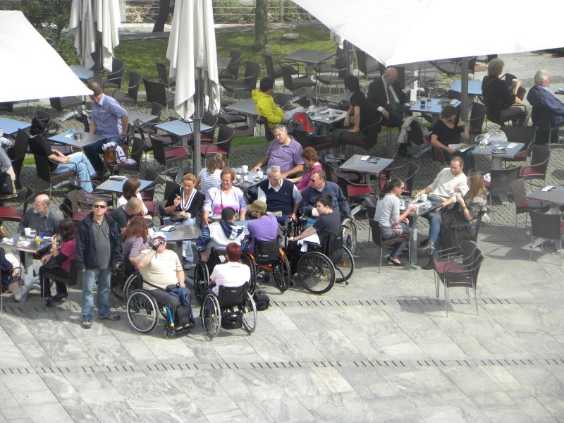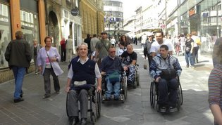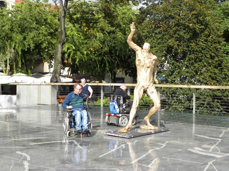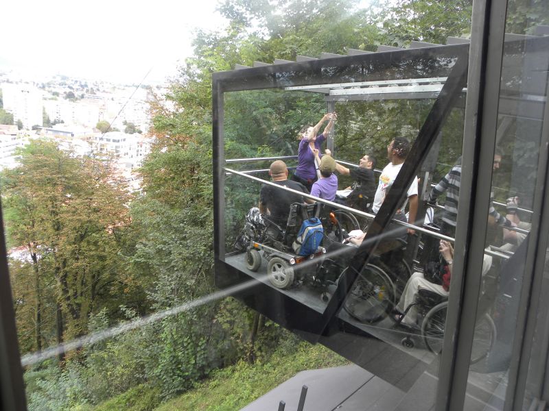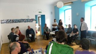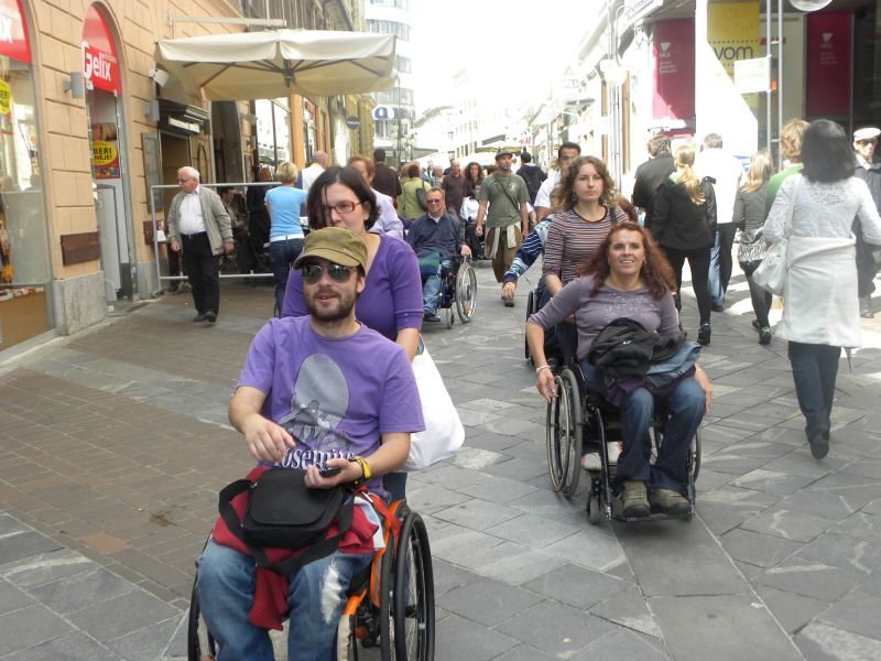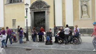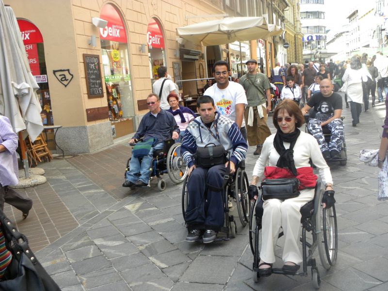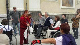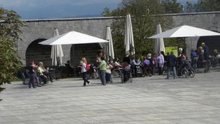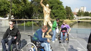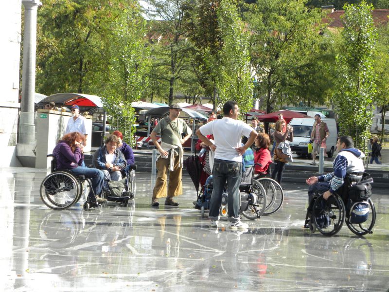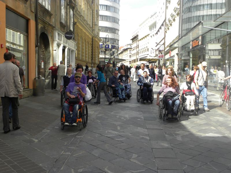 Po prihodu iz Semiča smo jih sprejeli na društvu, nato pa se še z nekaterimi našimi člani z avtobusi mestnega ljubljanskega potniškega prometa odpeljali do središča mesta. Po živahni Čopovi ulici smo se podali do spomenika našega največjega poeta Franceta Prešerna, jim predstavili Plečnikovo Tromostovje, nato pa se z vzpenjačo povzpeli na ljubljanski grad. Prostovoljci so se seveda povzpeli še na razgledni stolp, od koder se kot na dlani razpre pogled na Ljubljano in okolico.