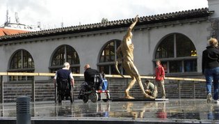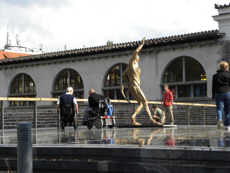 Sprehodili smo se še do novega Mesarskega mostu in občudovali skulpture akademskega kiparja Jakova Brdarja, ki ga krasijo. No, v načrtu smo imeli tudi vožnjo z ladjico, pa nam jo je zagodla nekoliko narasla Ljubljanica, tako da plovba ni bila mogoča.