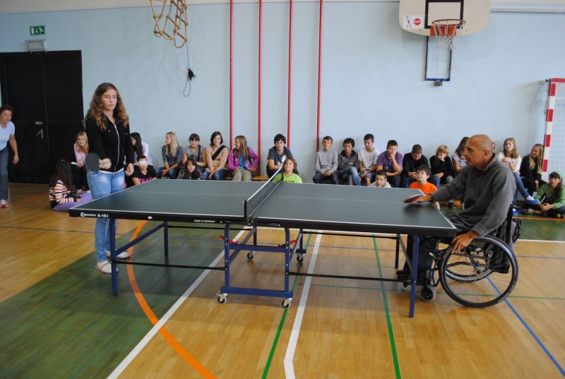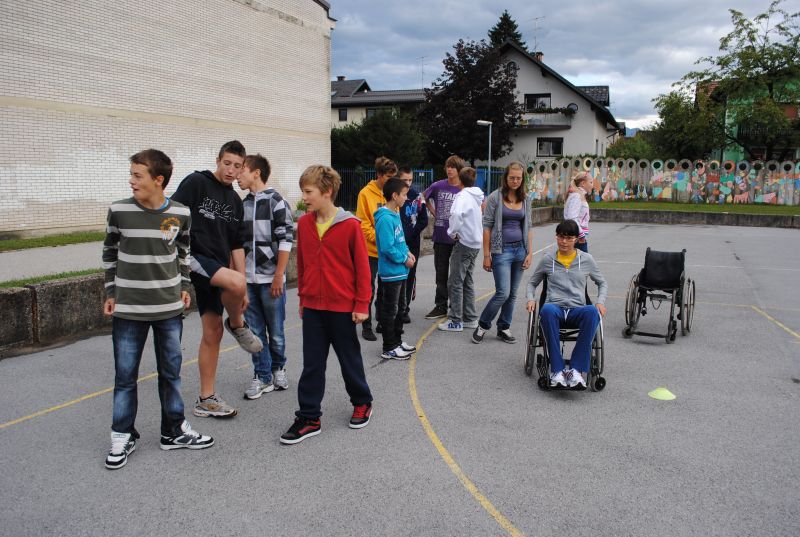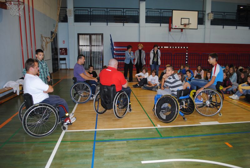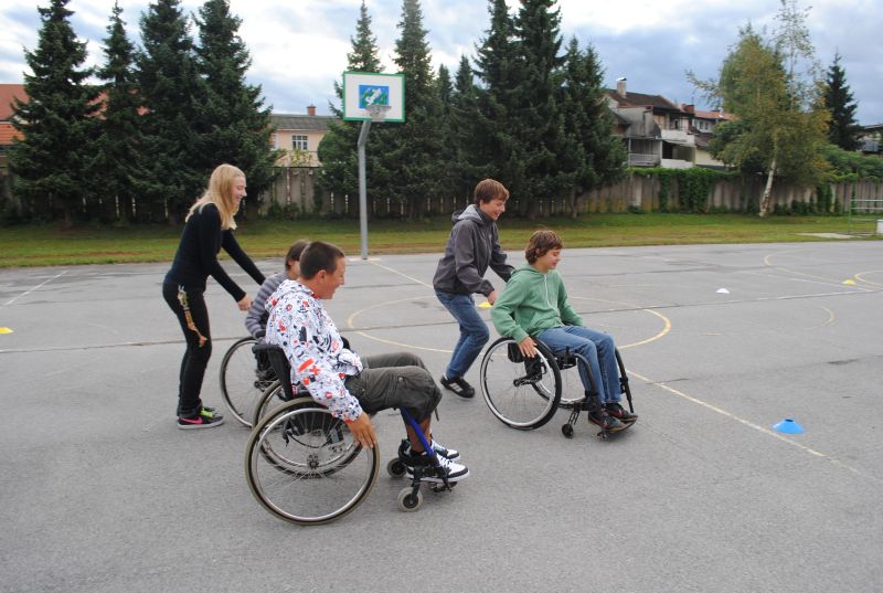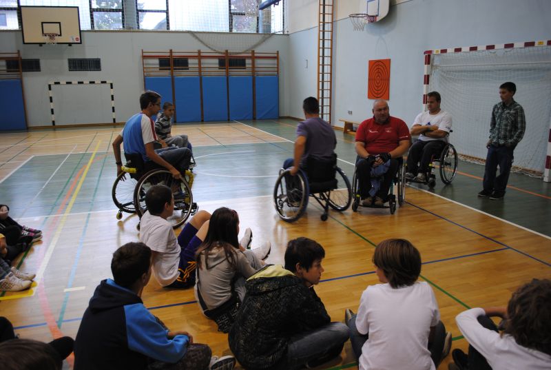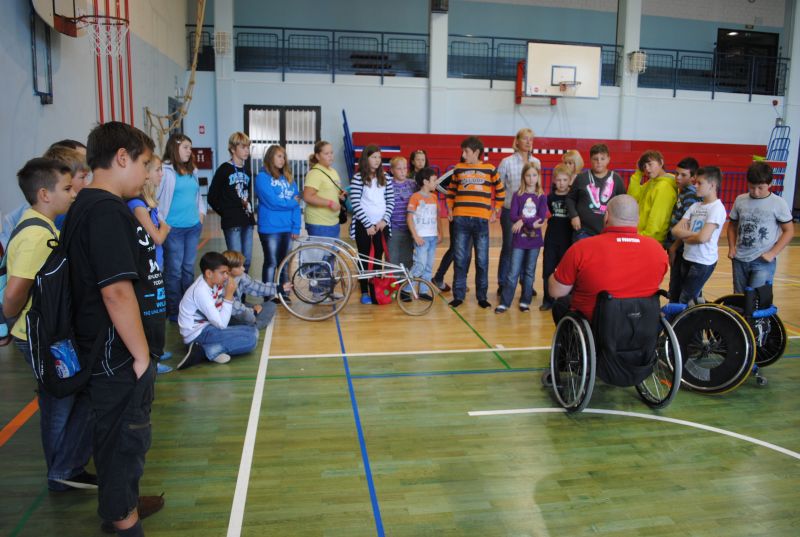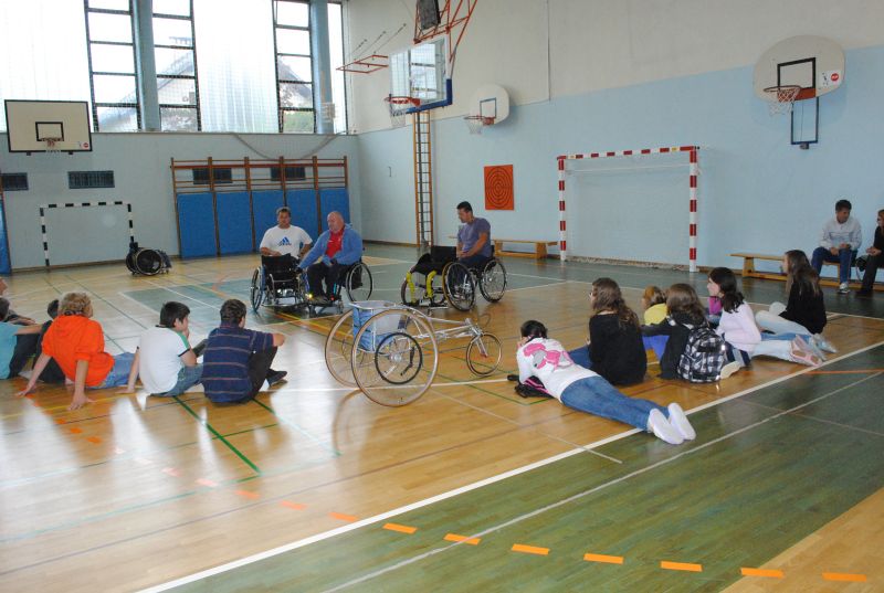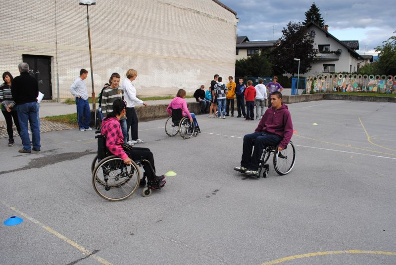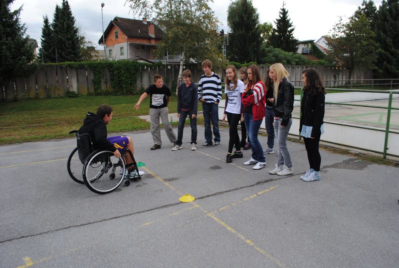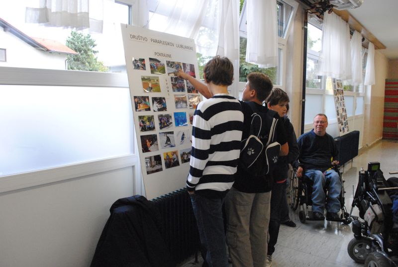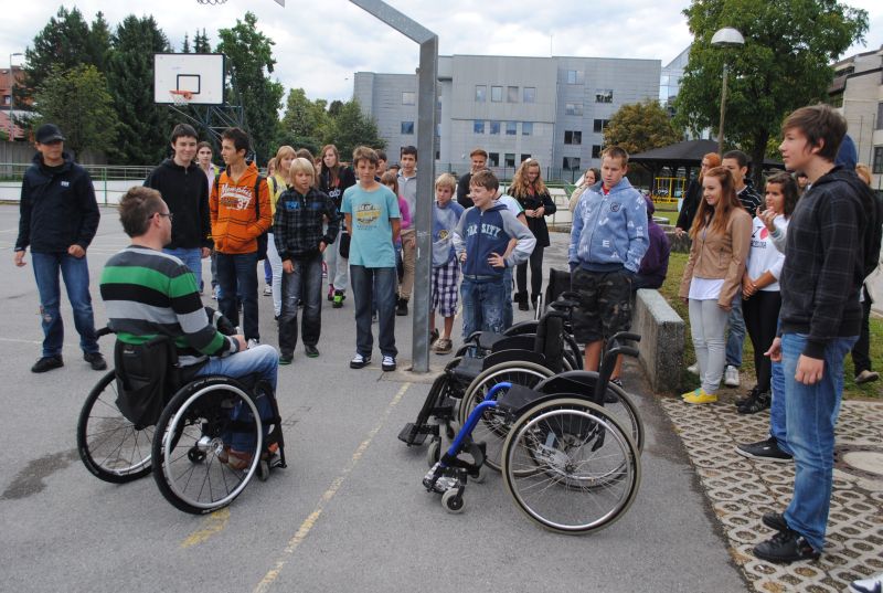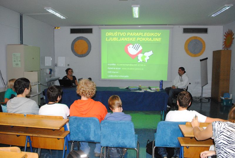 Najbolj poučna je bila prva predstavitev na kateri sta Mirjam in Rok predstavila in s projekcijo slik nazorno pokazala vzroke naše invalidnosti. Učenci so spoznali kaj pomeni postati paraplegik ali tetraplegik in kako se spopasti s povsem novim in na glavo obrnjenim življenjem. Na drugi delavnici se je prav gotovo vsem v spomin vtisnila huda posledica prometne nesreče našega najbolj gibalno oviranega tetraplegika, sicer pa odličnega slikarja Silva Mehleta, ki jim je predstavil slikanje s čopičem v ustih. Videli so kako nastajajo umetnine tovrstnih slikarjev, ki so člani Mednarodnega združenja slikarjev, ki slikajo z usti ali nogami. Videli so tudi Ano in Marijo, ki sta spretno izdelovali različne voščilnice in poslikave na steklo. V naslednji predstavitvi si izvedeli vse o naših športnih panogah in dosežkih naših športnikov. Lahko so se pomerili z našimi igralci namiznega tenisa in košarke (Zdenko, Slavko, Suad) na vozičkih. Spoznali so, da ni tako enostavno poganjati invalidski voziček, voditi žogo in po možnosti doseči še koš. V zadnji predstavitvi so na košarkarskem igrišču ob nasvetih Roberta praktično poskusili, kako se vozi in obvladuje invalidski voziček, ki je naš osnovni invalidski pripomoček.