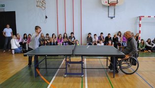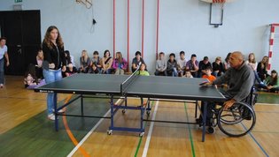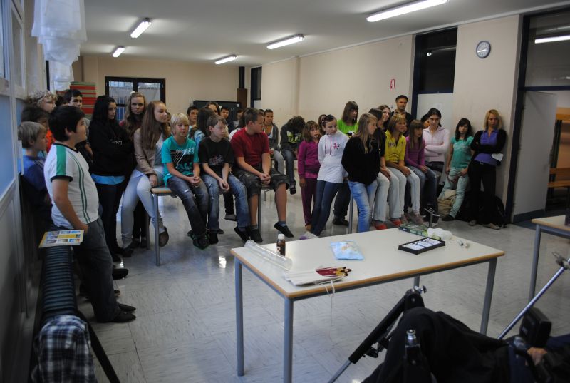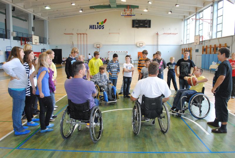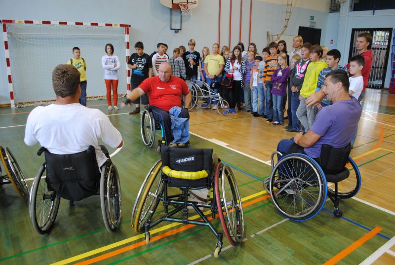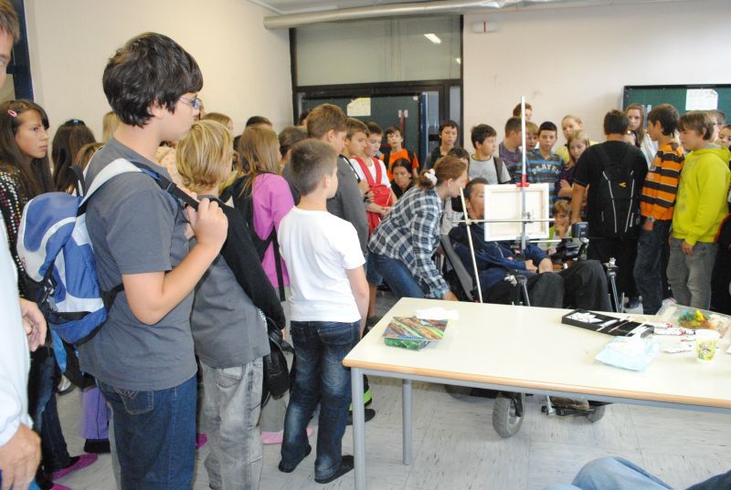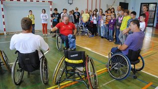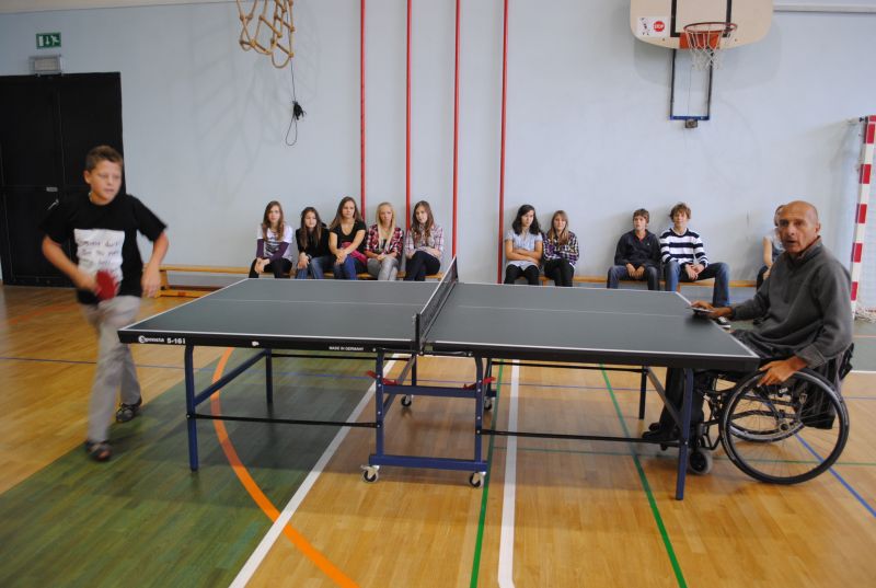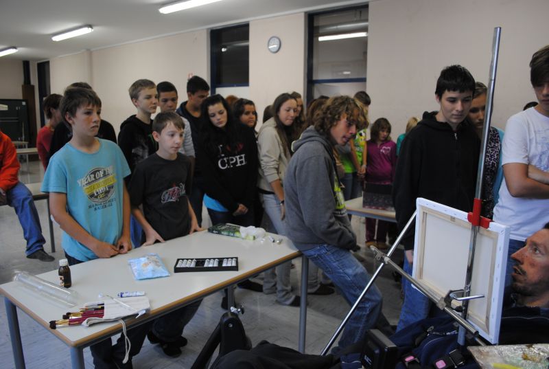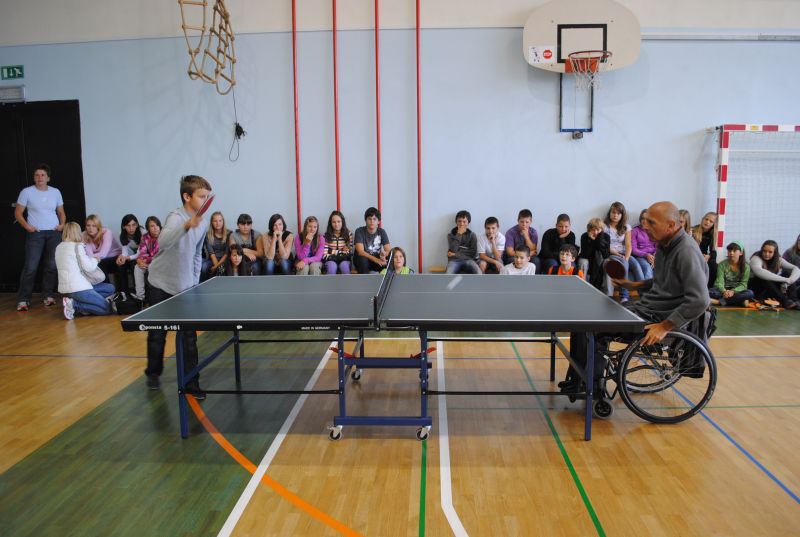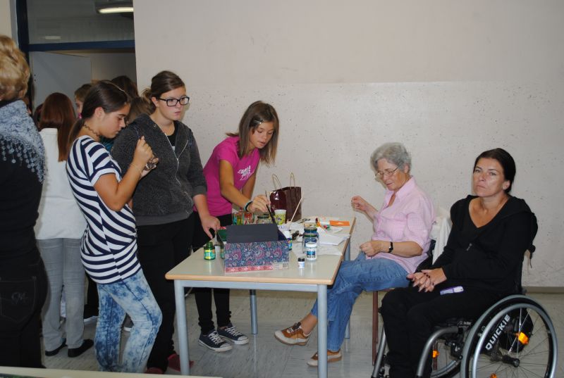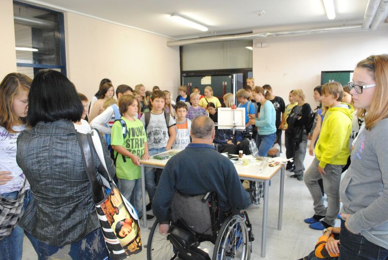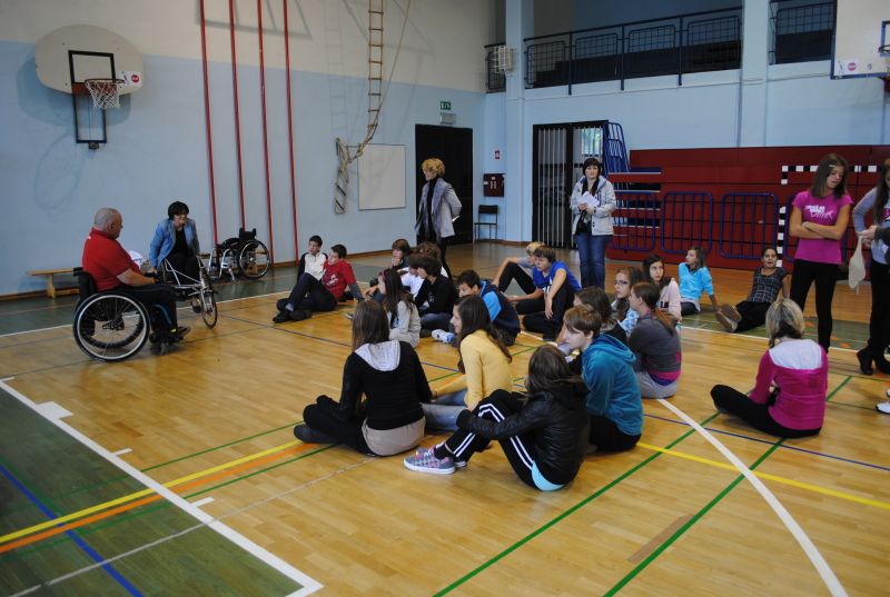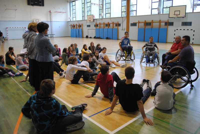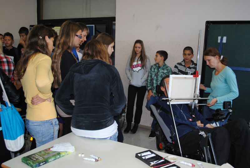 Najbolj poučna je bila prva predstavitev na kateri sta Mirjam in Rok predstavila in s projekcijo slik nazorno pokazala vzroke naše invalidnosti. Učenci so spoznali kaj pomeni postati paraplegik ali tetraplegik in kako se spopasti s povsem novim in na glavo obrnjenim življenjem. Na drugi delavnici se je prav gotovo vsem v spomin vtisnila huda posledica prometne nesreče našega najbolj gibalno oviranega tetraplegika, sicer pa odličnega slikarja Silva Mehleta, ki jim je predstavil slikanje s čopičem v ustih. Videli so kako nastajajo umetnine tovrstnih slikarjev, ki so člani Mednarodnega združenja slikarjev, ki slikajo z usti ali nogami. Videli so tudi Ano in Marijo, ki sta spretno izdelovali različne voščilnice in poslikave na steklo. V naslednji predstavitvi si izvedeli vse o naših športnih panogah in dosežkih naših športnikov. Lahko so se pomerili z našimi igralci namiznega tenisa in košarke (Zdenko, Slavko, Suad) na vozičkih. Spoznali so, da ni tako enostavno poganjati invalidski voziček, voditi žogo in po možnosti doseči še koš. V zadnji predstavitvi so na košarkarskem igrišču ob nasvetih Roberta praktično poskusili, kako se vozi in obvladuje invalidski voziček, ki je naš osnovni invalidski pripomoček.